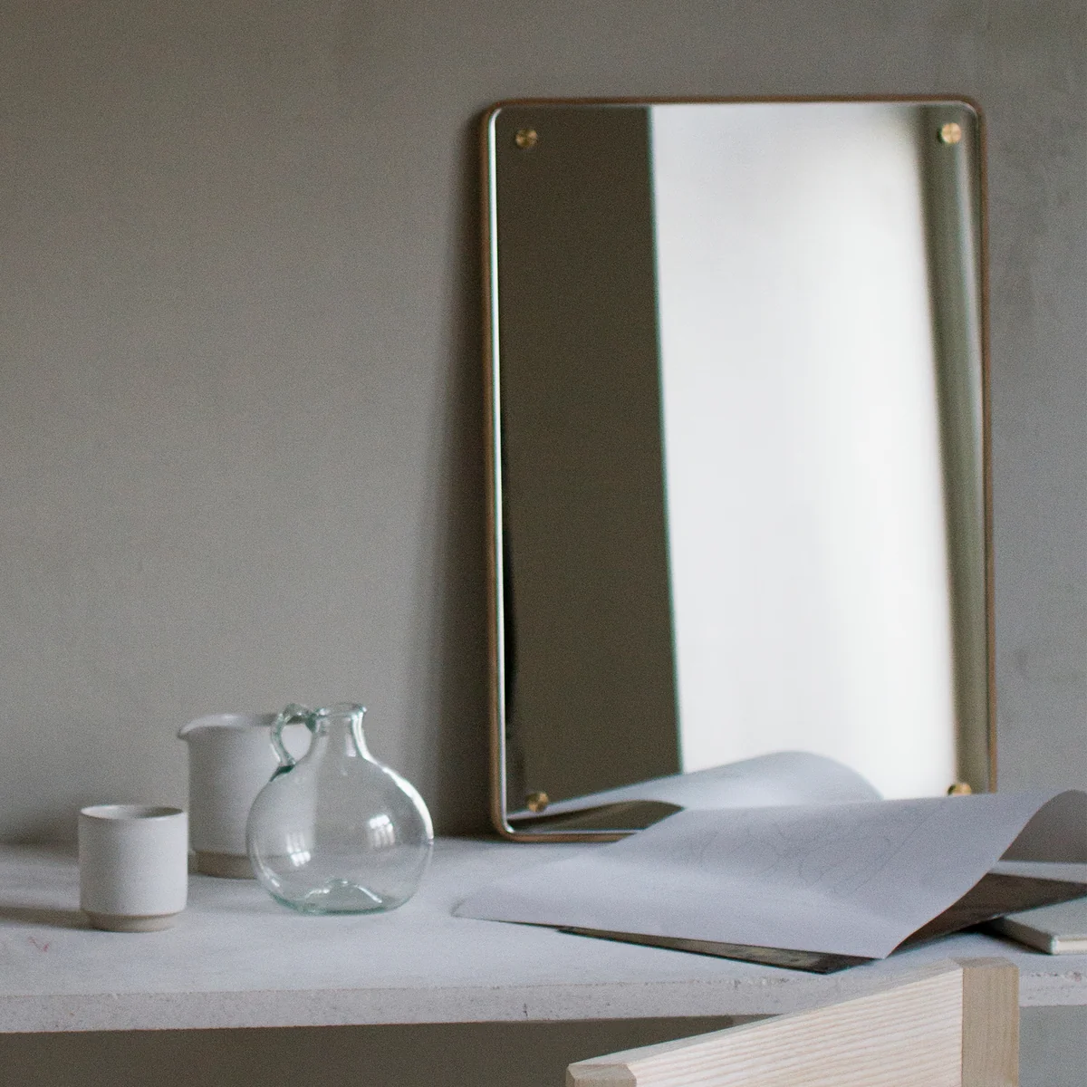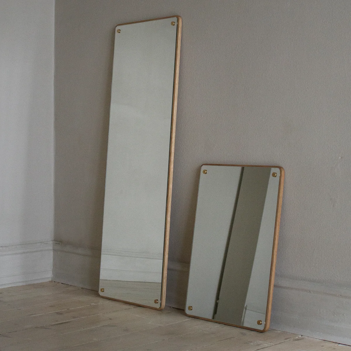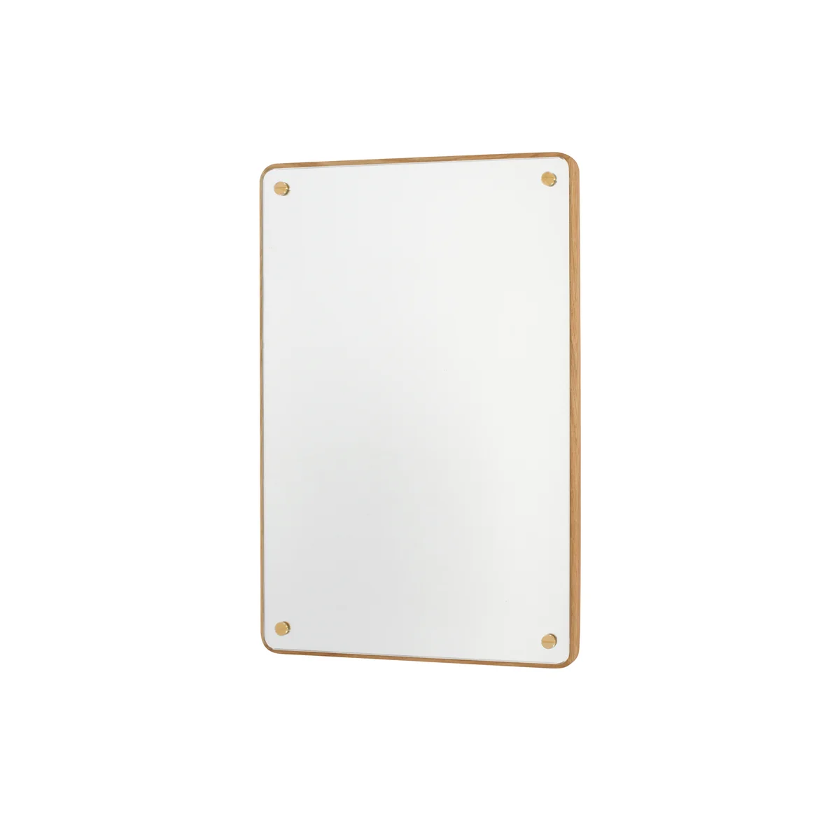 Le RM-1 Rectangular Le miroir de Frama est fait de verre, de bois de chêne et de laiton. Disponible en deux tailles.