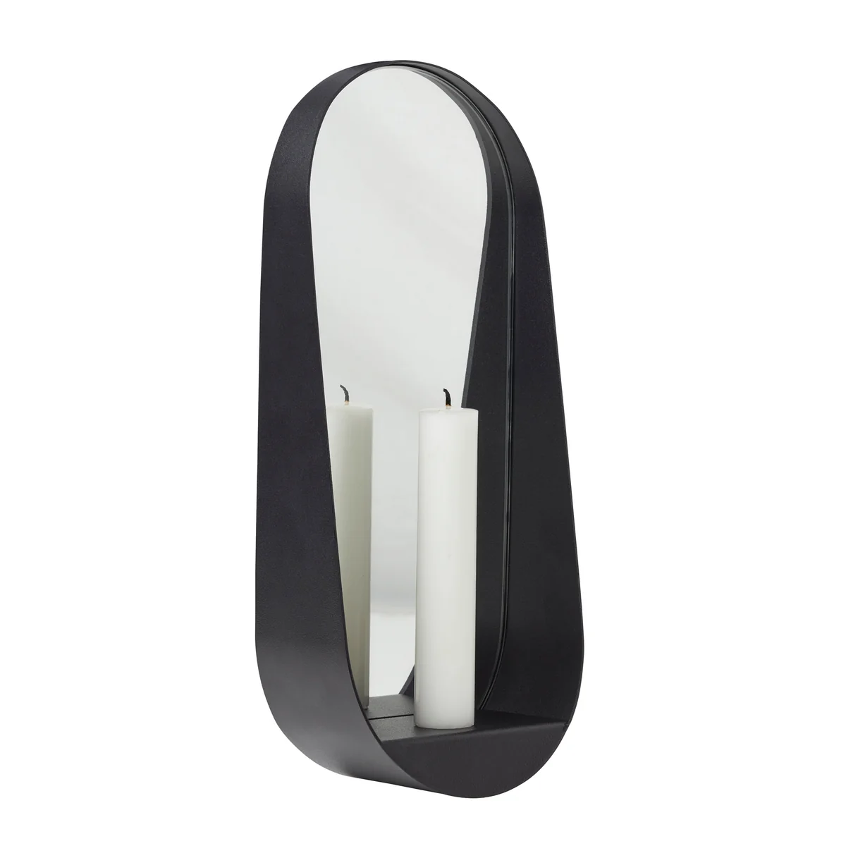 Glim est un miroir avec un bougeoir suspendu au mur, Gejst conçu par Böttcher & Kayser. Le miroir intensifie la lumière du bougeoir, s'inspire de vieilles lanternes et crée sur chaque mur une atmosphère "Hygge" danoise et chaleureuse.