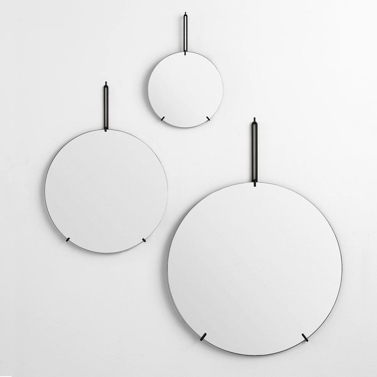 Disponible dans une variété de tailles et de couleurs de cadre, le miroir mural rond de Moebe peut être mélangé et assorti pour créer une installation artistique sur le mur.