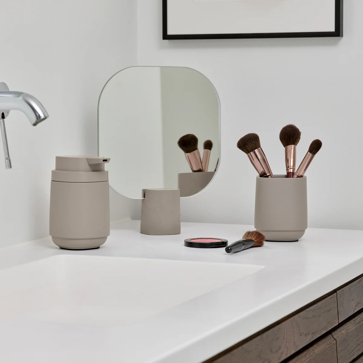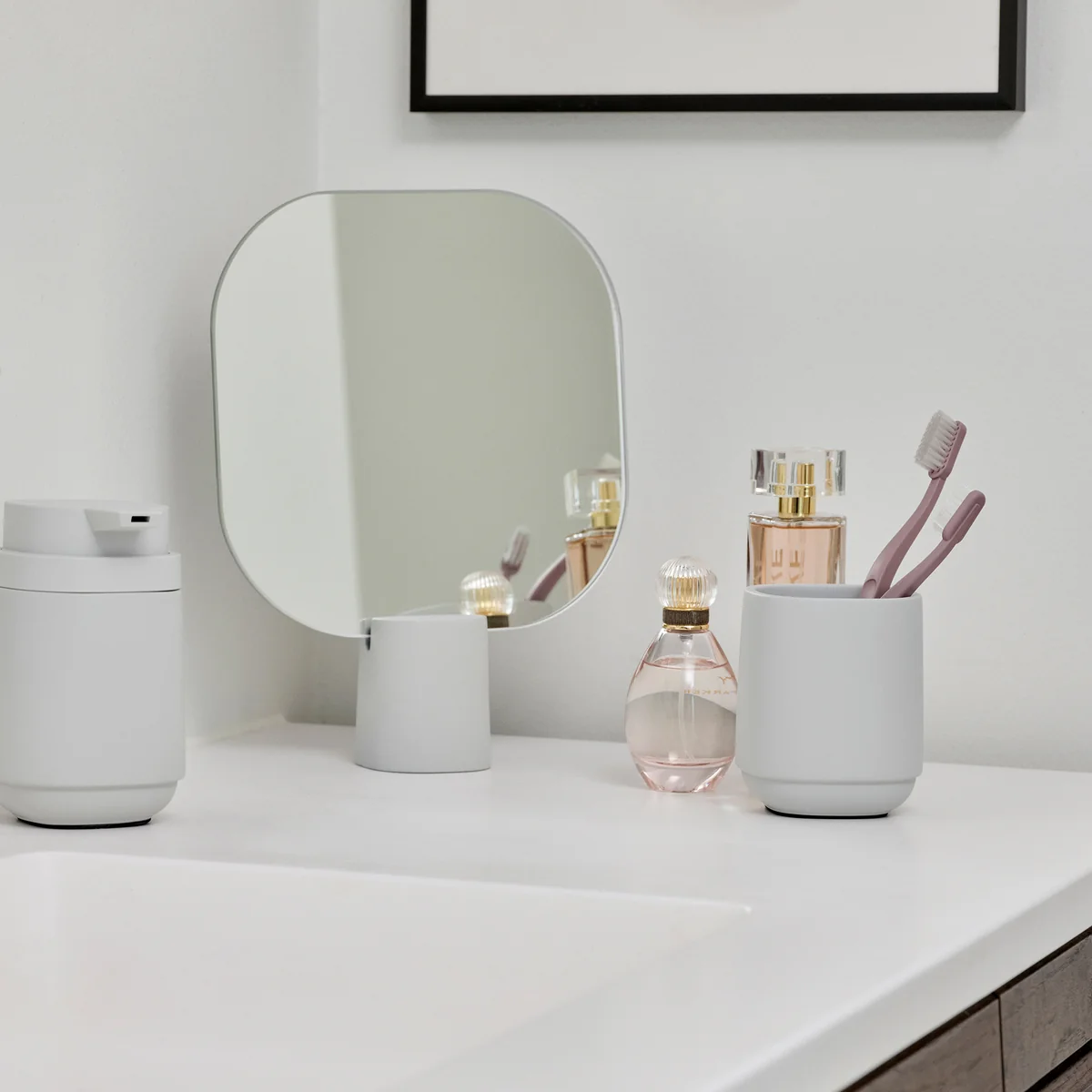 Avec son design simple et organique, ce miroir de table en verre avec Time miroir de table de Zone Denmark avec une surface en verre trempé et un socle en béton. Il n'attire pas l'attention, mais s'intègre parfaitement dans l'environnement, que ce soit dans la salle de bains, la chambre à coucher ou sur une étagère dans le couloir.