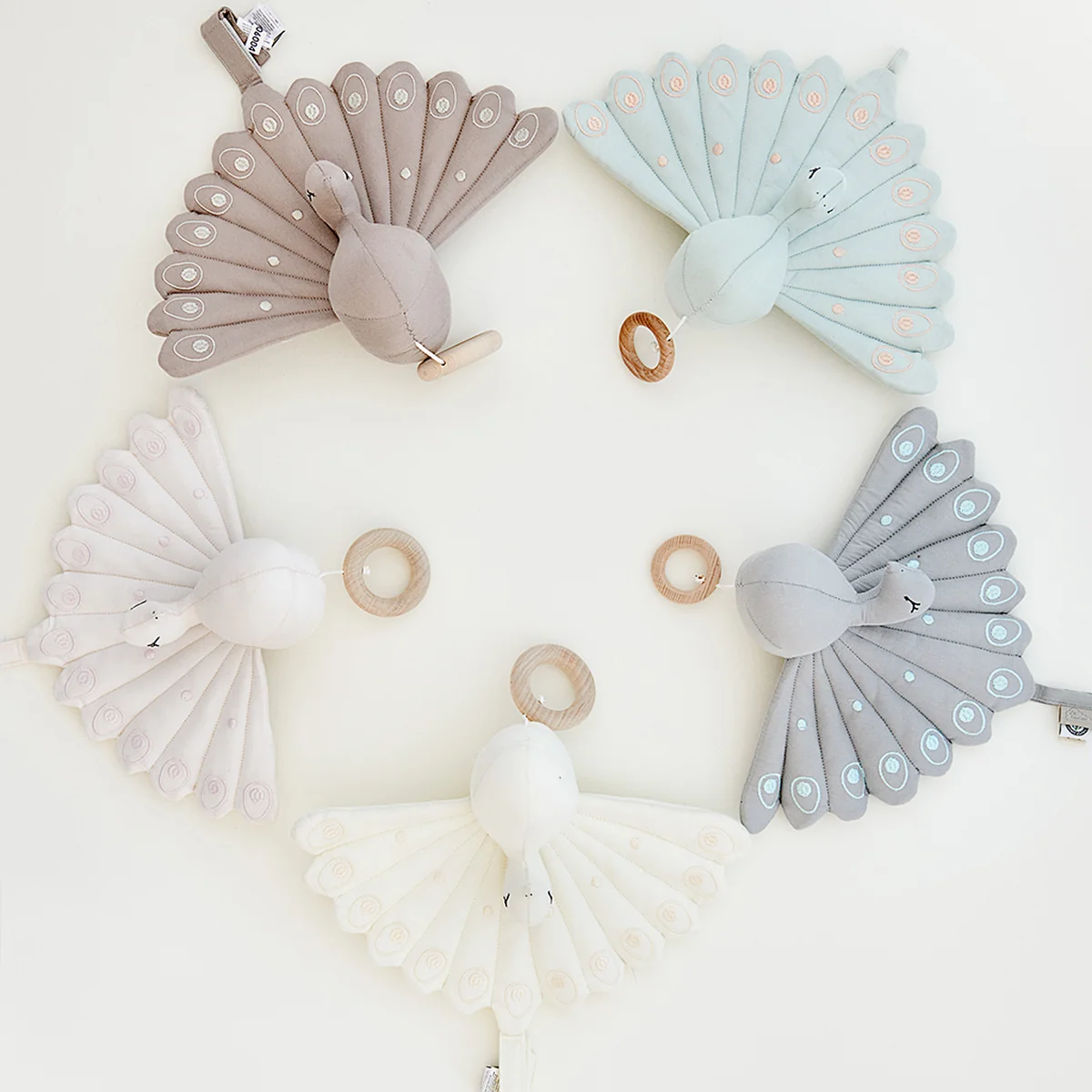 La boîte à musique paon de Cam Cam Copenhagen fait observer, rire et s'émerveiller les bébés. La boîte à musique fait briller les yeux de bébé : Pendant la journée, la boîte à musique paon garantit le plaisir de jouer et le soir, elle est une aide fidèle pour s'endormir. Les couleurs douces ainsi que les structures intéressantes captent l'attention du bébé et laissent beaucoup de place à l'imagination et à la créativité. La mélodie "Lullaby" éveille les sens de bébé et peut être arrêtée sur demande. La boîte à musique peut être facilement suspendue au-dessus du lit de bébé ou de la table à langer et constitue un merveilleux cadeau.