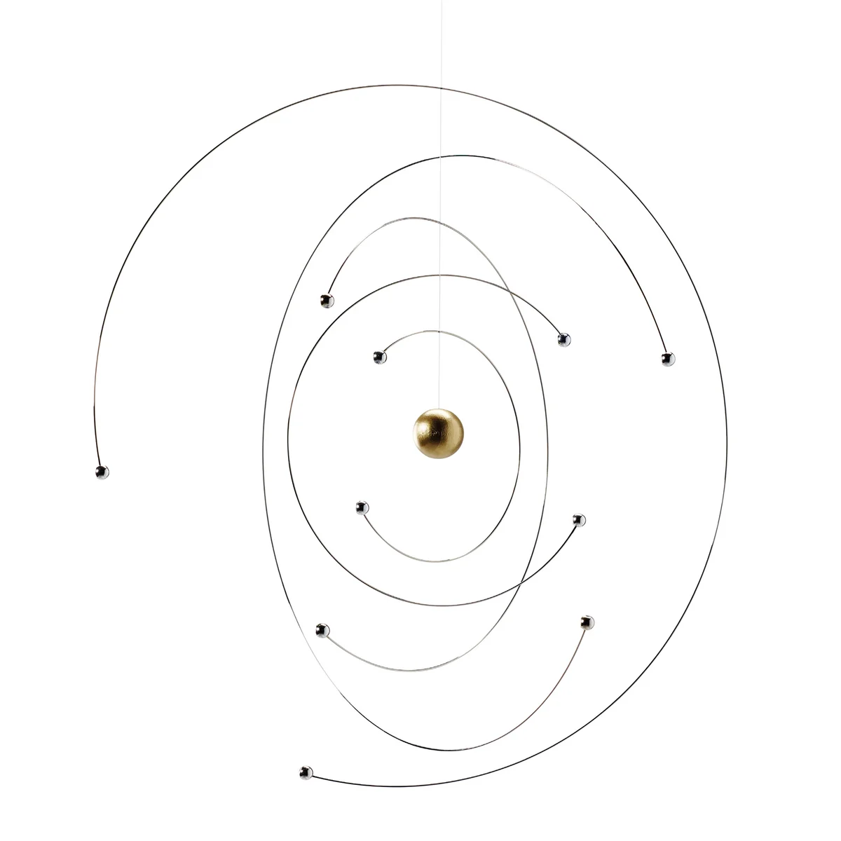 Le Niels Bohr Mobile de Flensted Mobiles est un mobile élégant pour la maison. Lorsque Niels Bohr a conçu son légendaire modèle atomique en 1913, il a jeté les bases du progrès technique - de la radio à l'ordinateur quantique. Ce qu'il n'avait probablement pas à l'esprit, c'est qu'il est aussi extrêmement décoratif : avec son design intemporel, il décore n'importe quelle pièce.