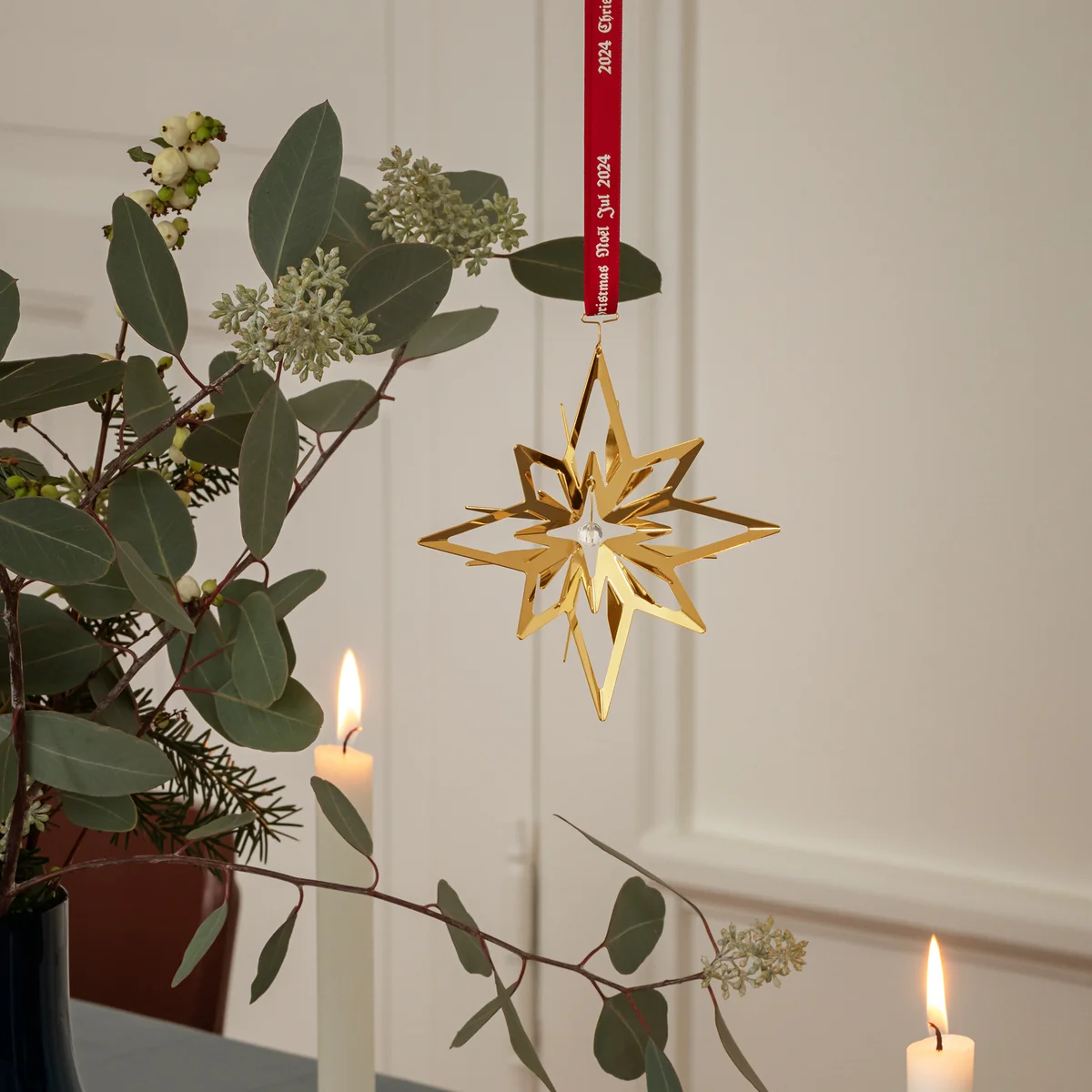 Le mobile est suspendu à un élégant ruban rouge portant l'année 2024 et est également livré avec un ruban bleu - un symbole élégant du thème de la collection de Noël de cette année. L'étoile scintillante symbolise la beauté intemporelle du ciel hivernal.
