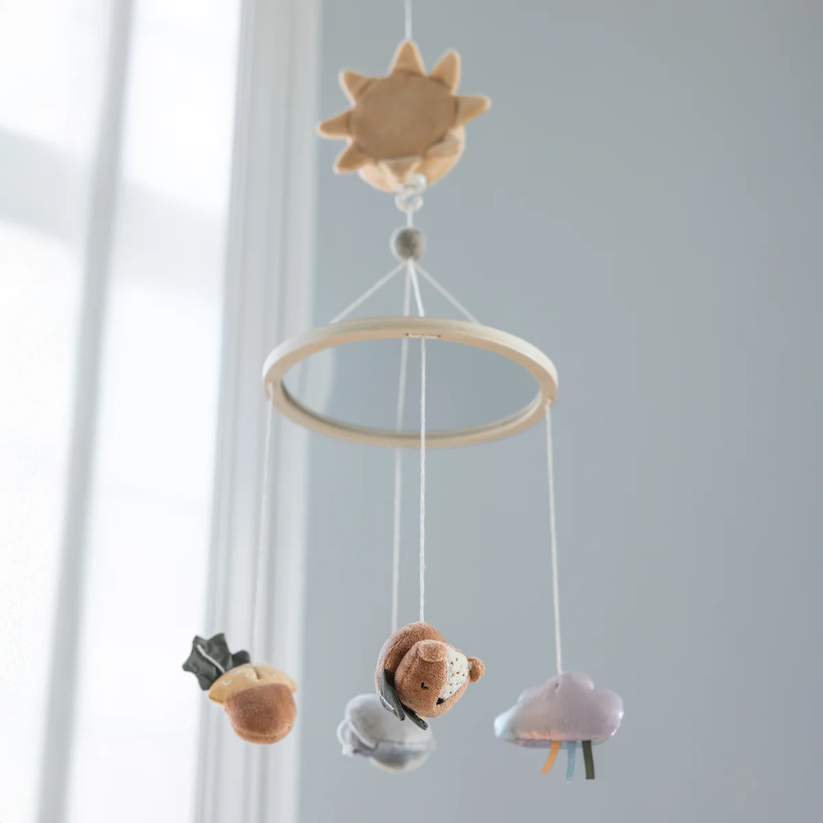 Le mobile à miroir musical & de Sebra associe des sons apaisants à des personnages joliment conçus sur le thème du Woodland -Il offre ainsi une merveilleuse expérience sensorielle à votre bébé. Pendant que les quatre personnages tournent lentement, le mobile joue une douce mélodie qui invite à la détente et à l'endormissement.