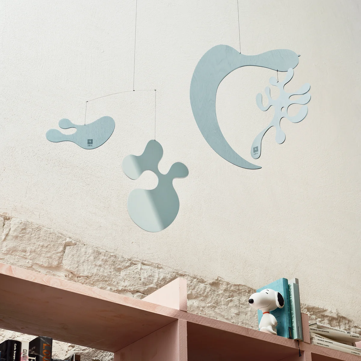 Les modèles Eames Plywood Mobile de Vitra sont des reproductions des mobiles originaux créés en 1941 par Charles & Ray Eames . Les mobiles Plywood se composent chacun de deux éléments abstraits et organiques en bois stratifié qui se tournent et se retournent l'un dans l'autre de manière ludique.