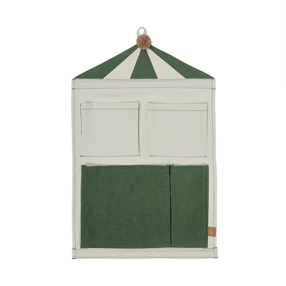 Circus Le rangement mural offre une possibilité décorative de créer de l'ordre sur le mur. Le rangement mural textile a un design graphique et rappelle l'esthétique joyeuse d'une tente de cirque. Doté de plusieurs compartiments, il est idéal pour ranger des livres, des jouets ou d'autres objets du quotidien. La suspension murale permet une utilisation flexible et peu encombrante dans les chambres d'enfants, les couloirs ou les espaces de vie. La fonction et le design s'associent ici harmonieusement.