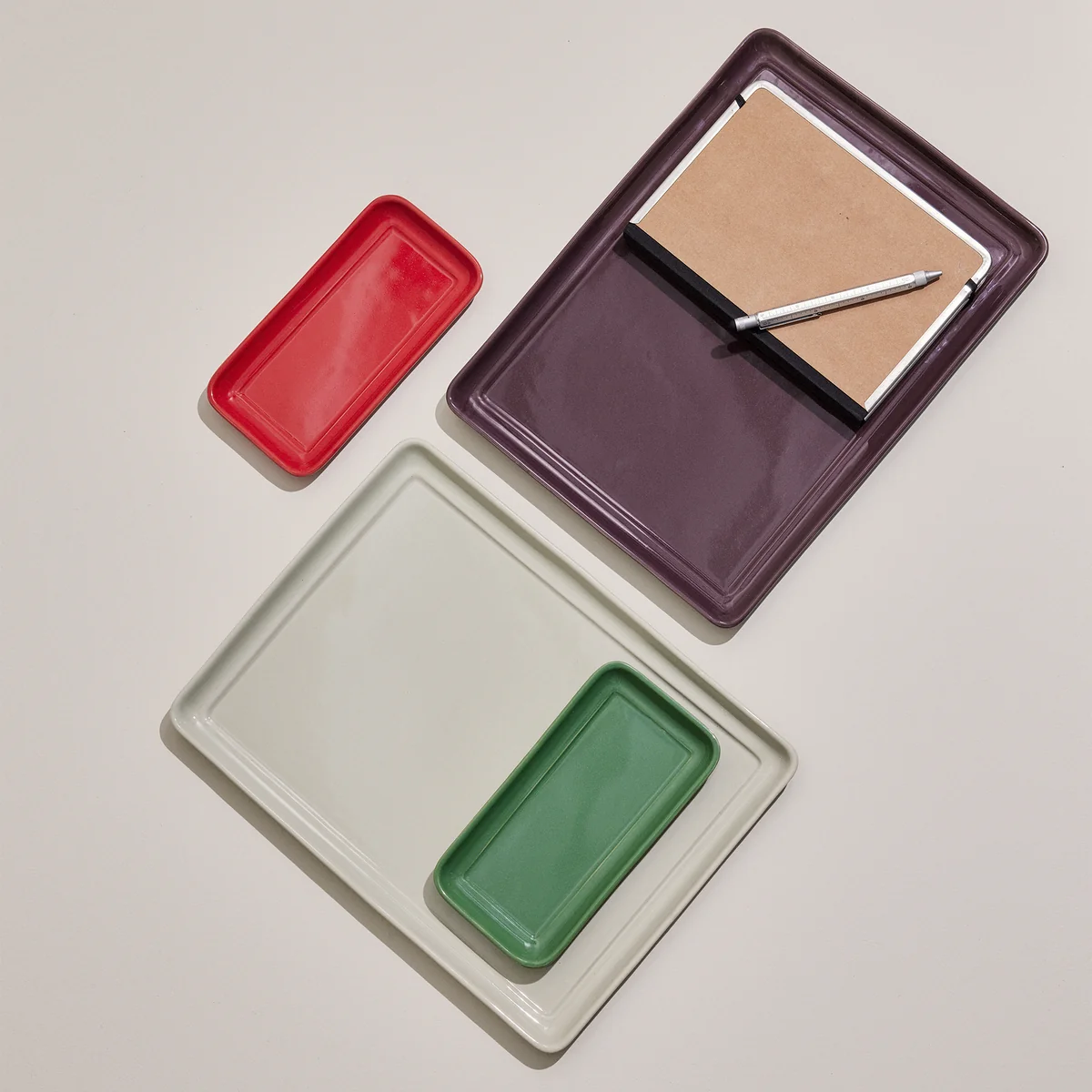 Le plateau Amare du fabricant danois Hübsch Interior est un set polyvalent qui ne doit manquer dans aucun ménage. Le set de 2 pièces en céramique peut être utilisé à merveille dans le bureau, le salon ou même dans la cuisine ou la salle de bain. Disponibles en différentes tailles, les plateaux peuvent être utilisés de manière multifonctionnelle. Amare est disponible en différentes combinaisons de couleurs.