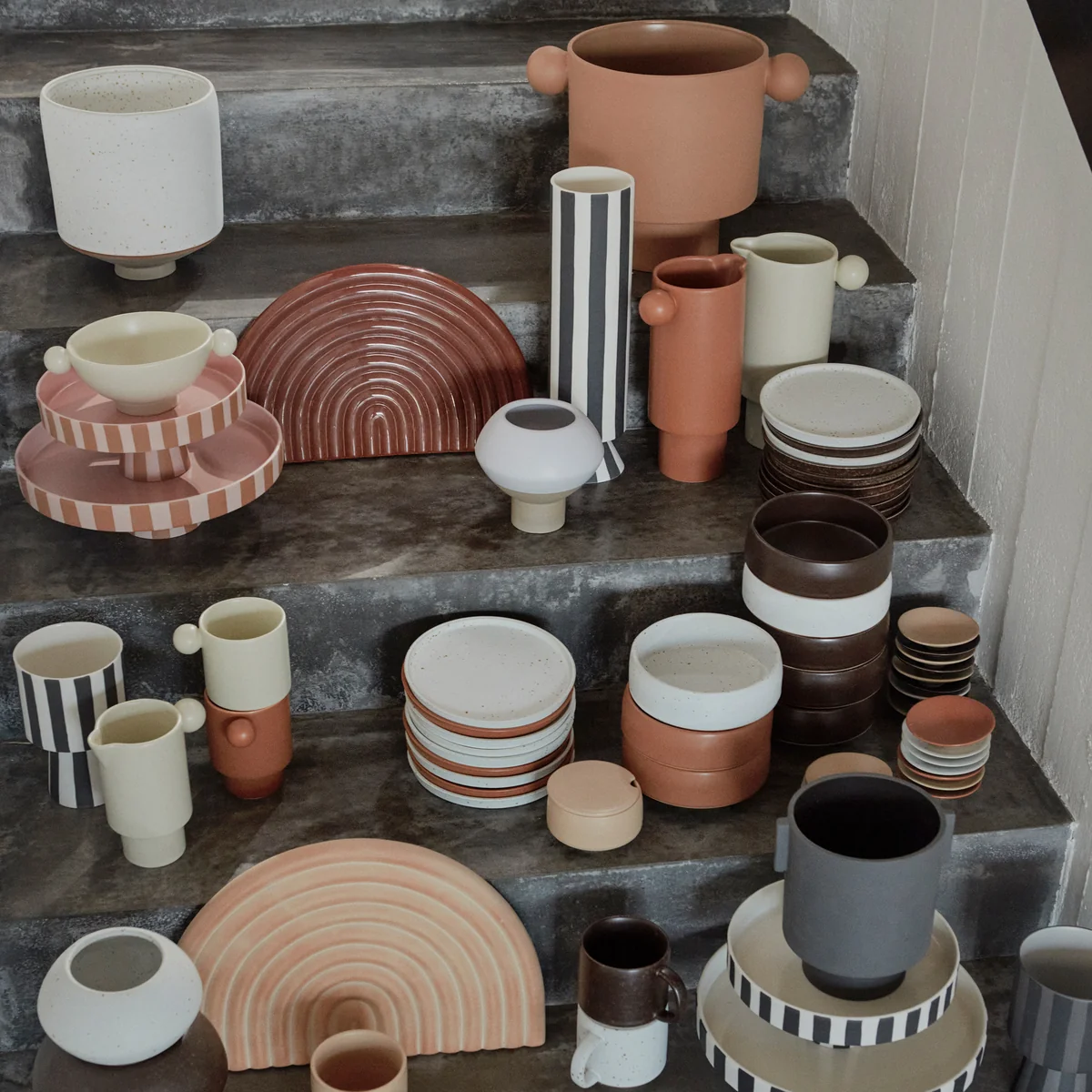 Le plateau est fabriqué à la main en céramique, qui est ensuite décorée de rayures. Le nettoyage se fait avec un Toppu se nettoie avec un chiffon humide.