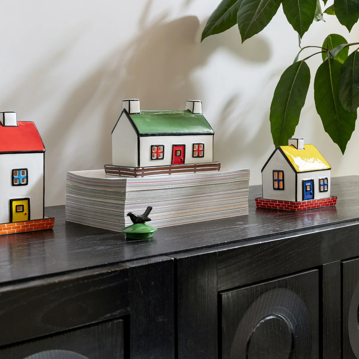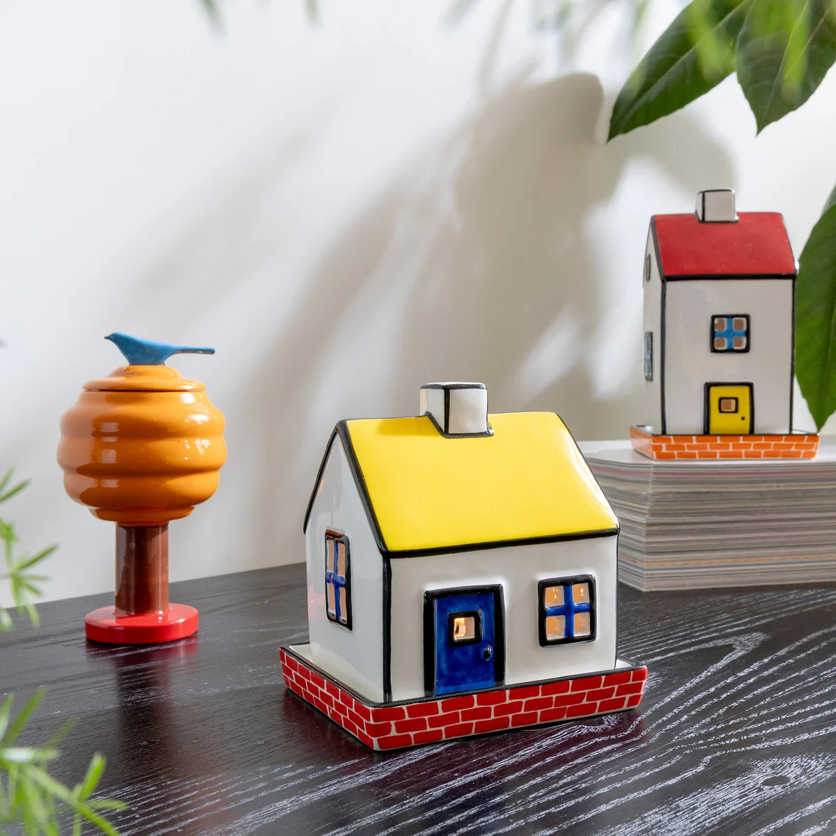 Le site Haines maison à bougies chauffe-plat est le résultat d'une collaboration avec le céramiste et illustrateur britannique Hal Haines . Inspiré par les scènes de table classiques anglaises et le Haines ' style de dessin marquant, il en résulte une bougie chauffe-plat peinte à la main au caractère ludique et aux détails forts. Le design en deux parties - composé d'un socle et d'un couvercle décoratif - crée une atmosphère chaleureuse et lumineuse à la lumière de la bougie. Idéal pour combiner avec d'autres bougeoirs à réchaud de la série pour créer un petit village de lumière plein d'ambiance.
