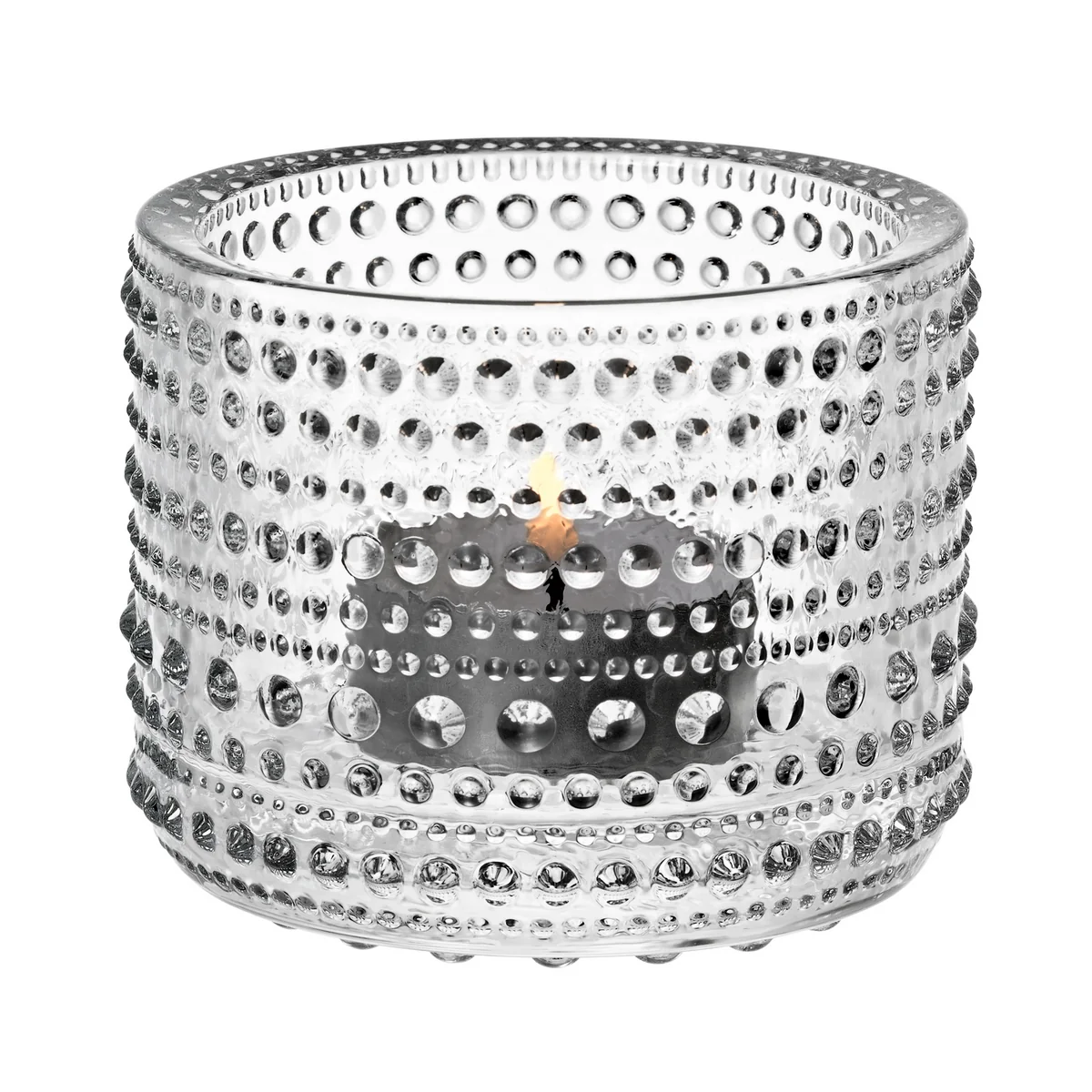 Dans les années 60, Oiva Toikka a essayé de trouver une méthode pour dissimuler les coutures du verre pressé. C'est ainsi qu'il eut l'idée de placer de petites gouttes de verre sur les coutures. Son expérience s'est transformée en un design entièrement nouveau, qui a été réédité par Iittala. Les Kastehelmi Votive s d'Oiva Toikka sont disponibles dans de nombreuses couleurs d'ambiance.