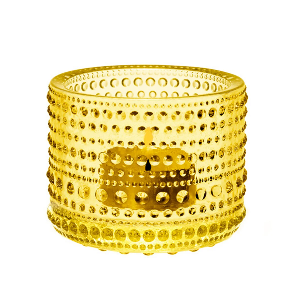 Dans les années 60, Oiva Toikka a essayé de trouver une méthode pour dissimuler les coutures du verre pressé. C'est ainsi qu'il eut l'idée de placer de petites gouttes de verre sur les coutures. Son expérience s'est transformée en un design entièrement nouveau, qui a été réédité par Iittala. Les Kastehelmi Votive s d'Oiva Toikka sont disponibles dans de nombreuses couleurs d'ambiance.