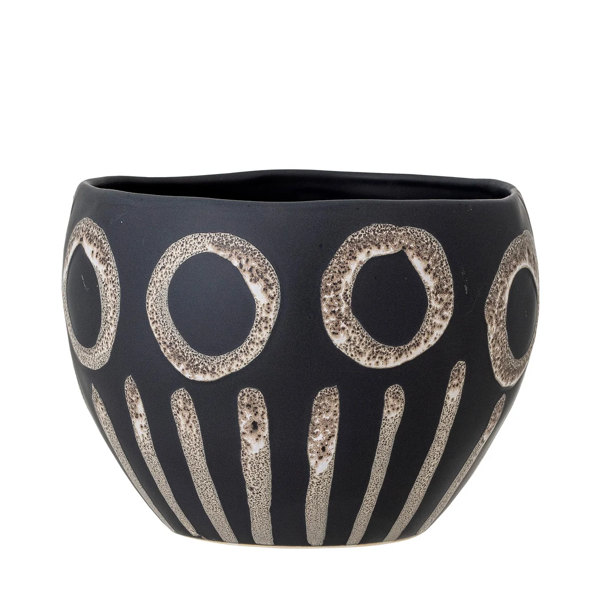 Le pot de fleurs Magnus de Bloomingville est un magnifique pot de fleurs noir qui combine lignes droites et cercles. Le pot de fleurs décoratif met en valeur vos fleurs préférées. En raison de la nature de l'émail et du travail manuel, des variations de couleur peuvent se produire.