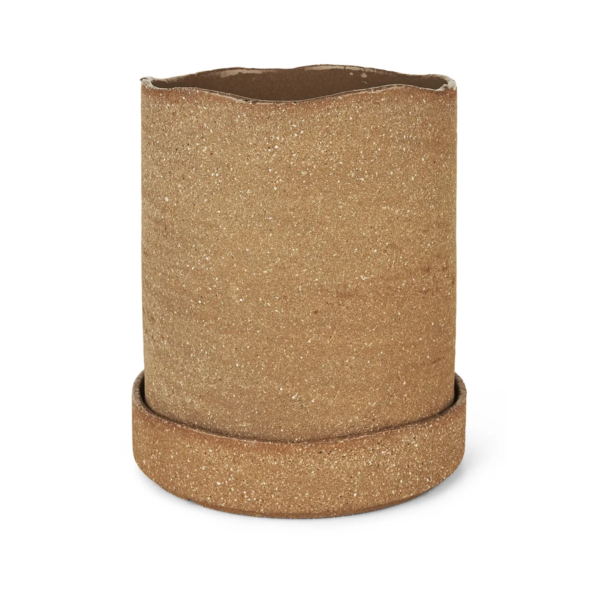 Avec son extérieur rugueux non émaillé et son bord artistiquement inégal, le pot Uneru avec sa soucoupe assortie confère à chaque pièce une expression tactile chaleureuse. Le pot est composé de 30 à 40 % d'argile recyclée et l'intérieur est émaillé, ce qui en fait une maison idéale pour vos plantes préférées. En raison de la matière première naturelle, des taches et des variations dans l'argile peuvent apparaître.