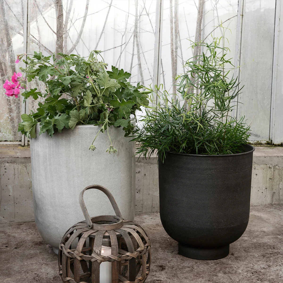 Les pots de fleurs de House Doctor forment un coin vert et coloré sur la terrasse. Pho se compose de deux pots de tailles différentes dans une couleur grise époustouflante qui s'intègre dans presque tous les intérieurs.