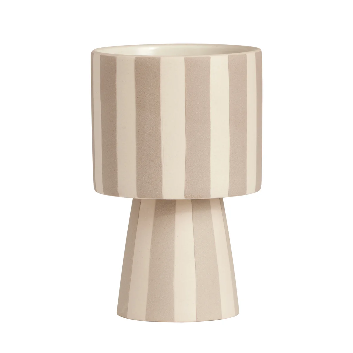 Le cache-pot Toppu de OYOY met habilement en scène fleurs et plantes. Son motif à rayures apporte une touche élégante et graphique à l'espace de vie et, même sans plantation, il attire l'attention sur une étagère ou une table d'appoint. La forme géométrique inhabituelle aide à présenter les plantes et les fleurs de manière élégante et moderne.