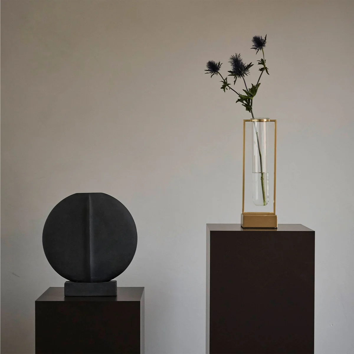 Le site Guggenheim vases Mini de 101 Copenhagen sont des objets de design sculpturaux inspirés de la géométrie archétypale. La transition entre des formes fondantes, des lignes nettes et des silhouettes fines crée des illusions d'optique décoratives qui mettent artistiquement en valeur n'importe quel espace - que ce soit sur une commode dans le salon, un buffet dans le couloir ou la table de nuit dans la chambre à coucher.