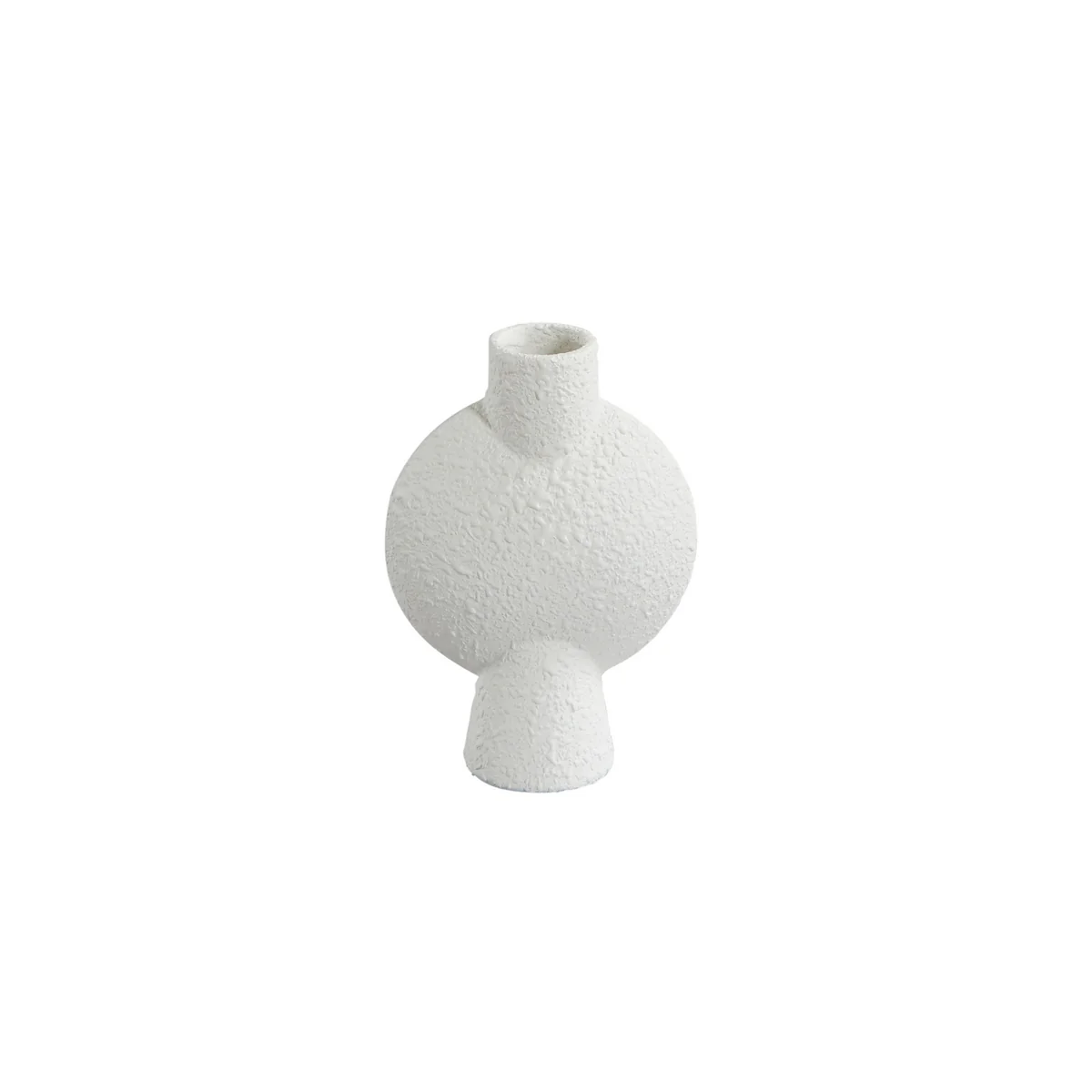 Le Sphere Vase Bubl Mini de 101 Copenhagen s'inspire d'anciens vases chinois et se présente donc dans des tons de terre fanés qui conviennent à presque tous les styles d'intérieur. De face, son corps aux formes élégantes rappelle une sphère - d'où le nom Bubl - mais de côté, on reconnaît la forme plate du vase.