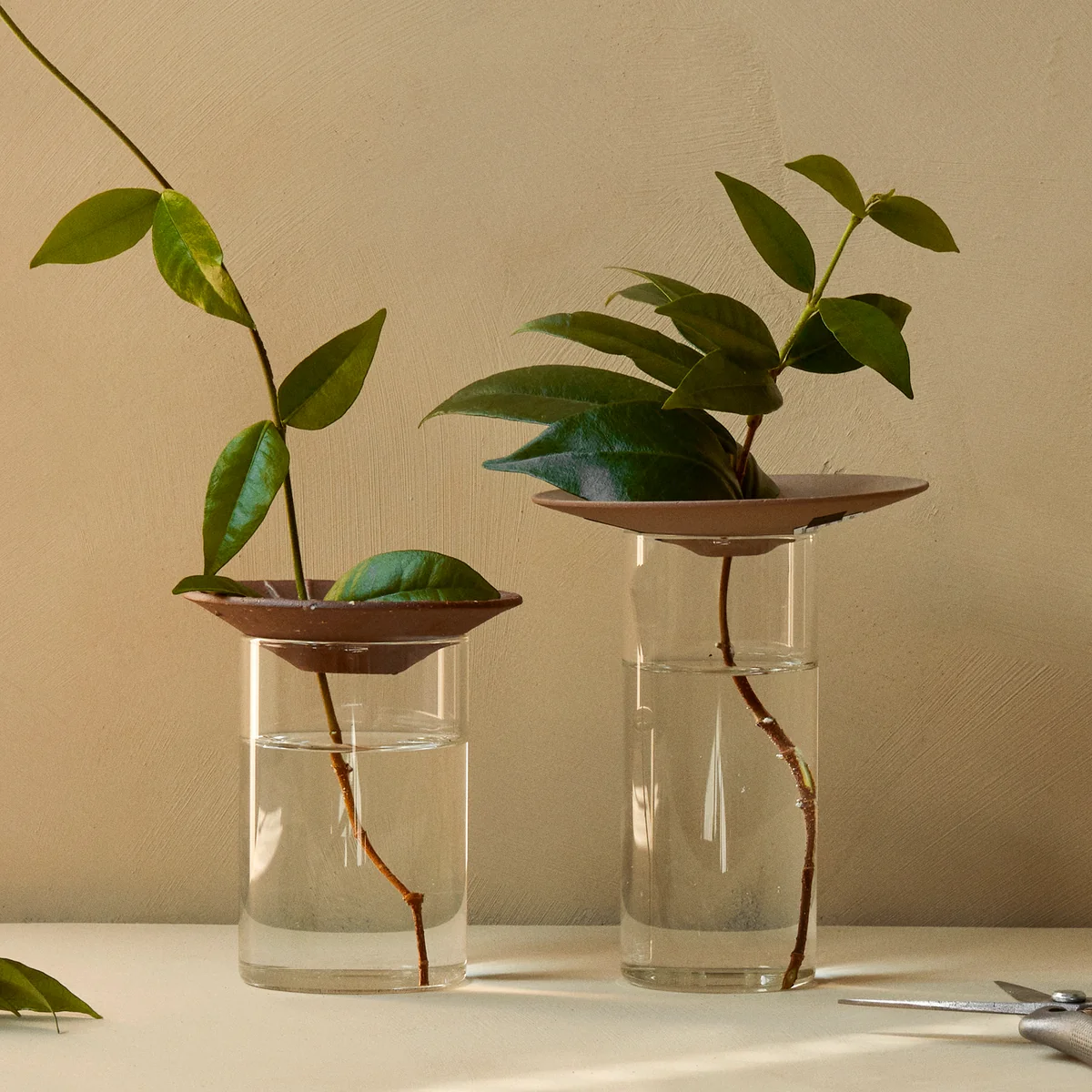 Le vase Cresco Propagation du fabricant scandinave Audo séduit par son design sobre et minimaliste. Le vase en verre et grès est disponible en set de 2 et convient parfaitement pour la multiplication de boutures de plantes ou pour semer de plus grosses graines ou des bulbes de fleurs. Cresco offre un espace optimal pour la croissance des racines.
