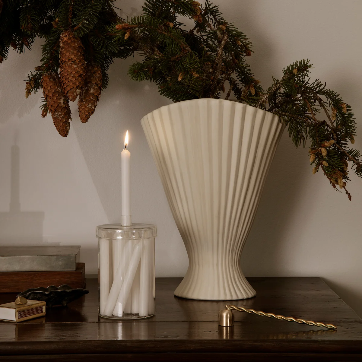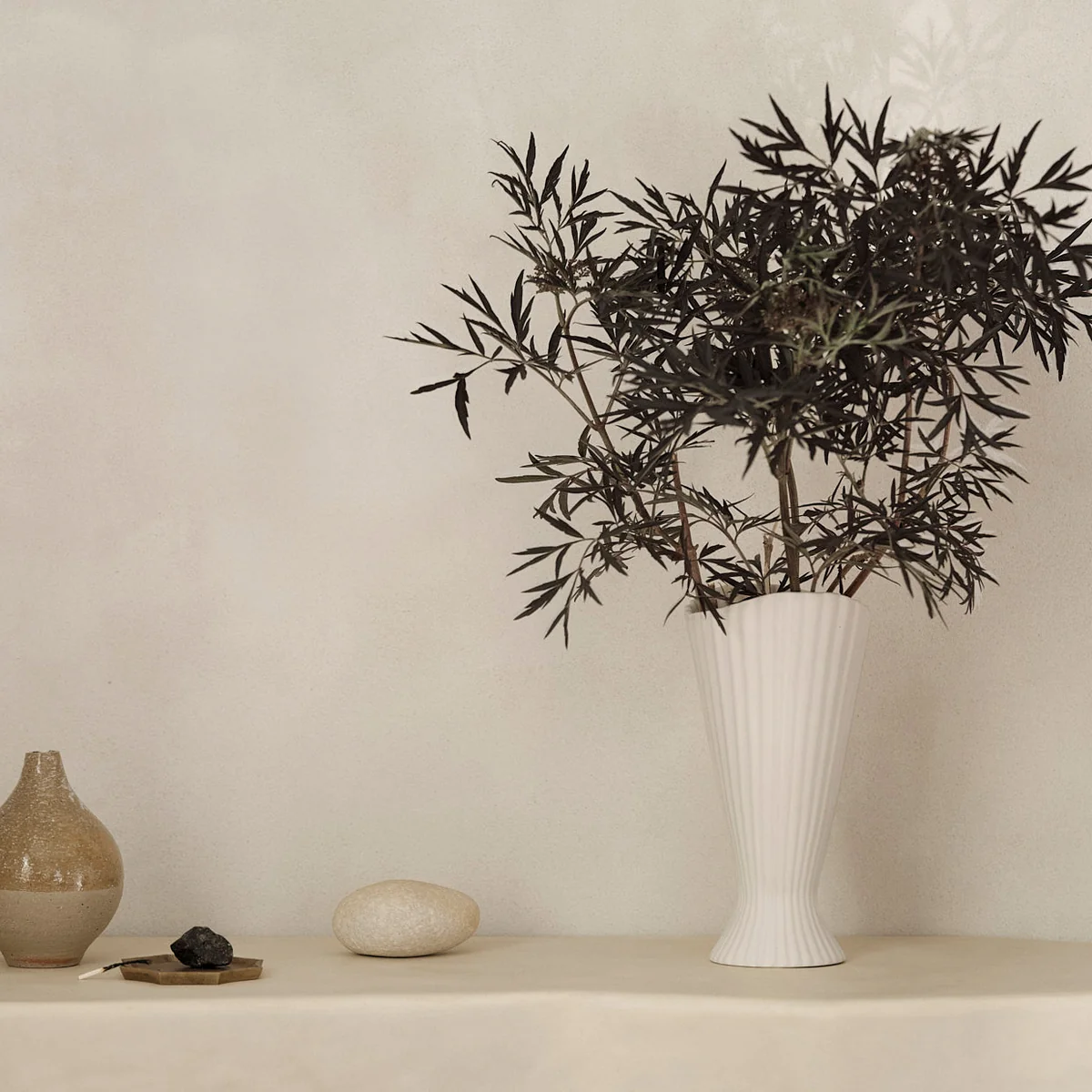 Le Fountain vase du label danois Ferm Living attire immédiatement l'attention de tous ! Cette élégante pièce de décoration séduit par sa douce expression. Fountain s'inspire de la forme classique d'une fontaine. Le vase de Ferm Living peut être merveilleusement rempli de fleurs fraîches et séchées ou de brindilles. Le Fountain Mais le vase peut également être utilisé seul comme objet de décoration. L'extérieur mat contraste avec la glaçure claire de l'intérieur.