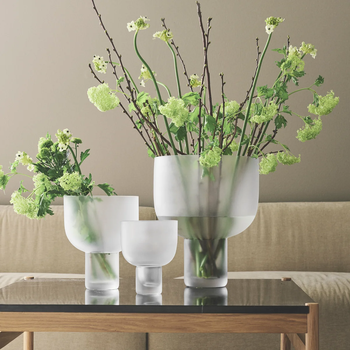 La collection NEBL a été inspirée par le terme allemand signifiant "brouillard". L'enveloppe en verre dépoli n'offre pas seulement un attrait visuel, elle remplit également une fonction pratique en cachant les tiges des fleurs. Il en résulte une apparence sereine et énigmatique qui incite à l'exploration et à la réflexion.