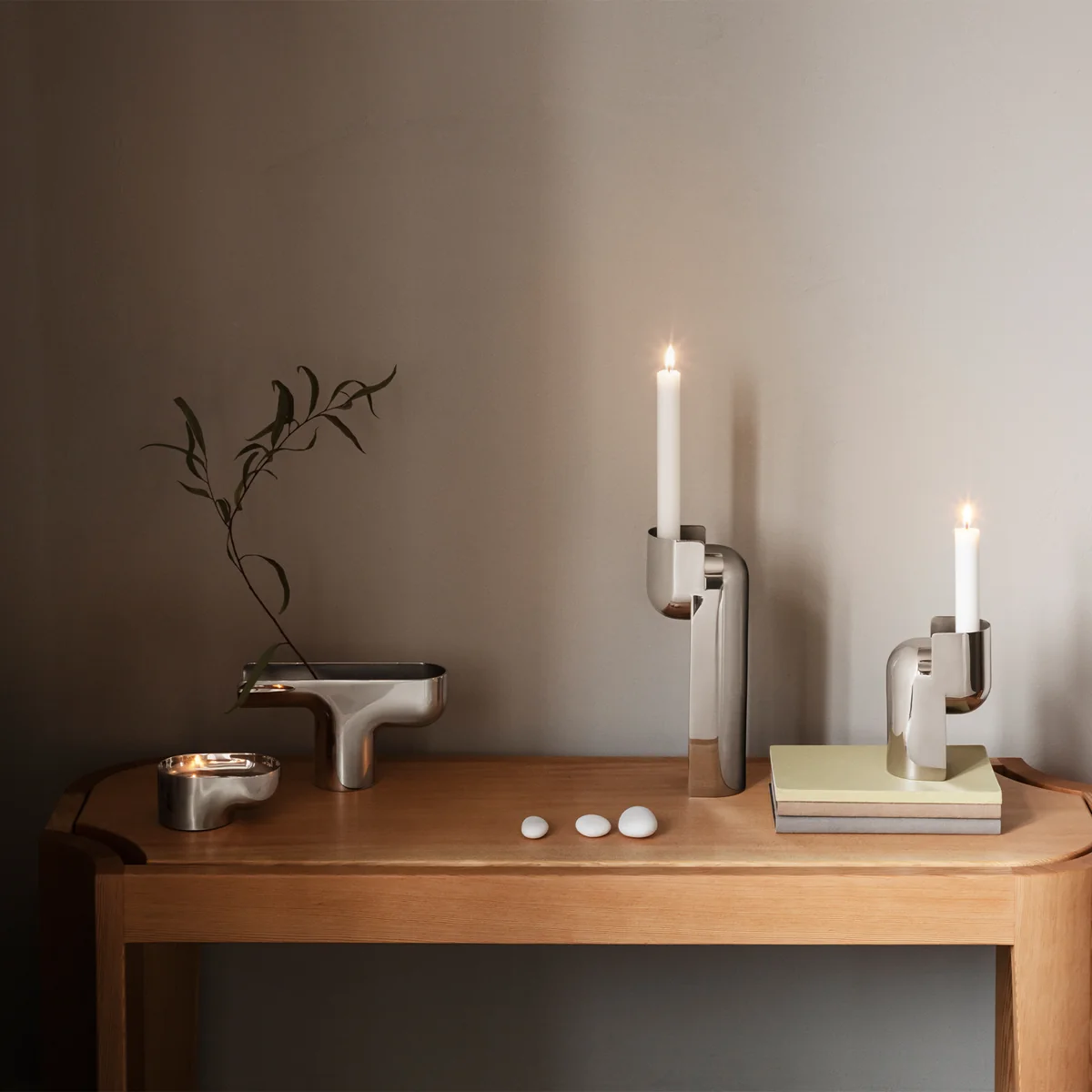Le Nendo Vase du label danois Georg Jensen est un objet de design contemporain exceptionnel. Grâce à son design abstrait, ce bel objet sculptural attire l'attention dans tous les intérieurs. Nendo Il est fabriqué en acier inoxydable massif moulé et poli à la main. Grâce à l'utilisation de ce matériau massif, aucune ligne de séparation n'est visible, ce qui lui confère une touche de qualité supérieure. Le vase peut être utilisé comme sculpture autonome. Mais il peut également être utilisé de manière classique pour des compositions florales.