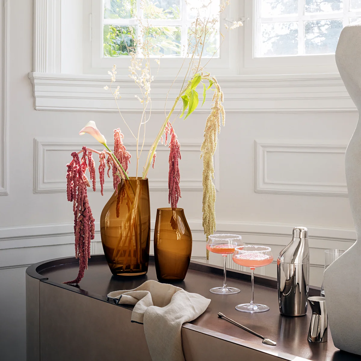 Le Sky Le vase de Georg Jensen se caractérise par ses lignes artistiques et ses courbes esthétiques qui lui donnent un aspect moderne et architectural. Il est fabriqué en acier inoxydable poli et brillant ou en verre soufflé à la bouche et attire ainsi tous les regards. Les reflets de la lumière, en particulier, font que le vase devient rapidement un élément phare de l'aménagement intérieur. Le site Sky Le vase est né de la plume du designer industriel et architecte d'intérieur Aurélien Barbry et est disponible en différentes versions.