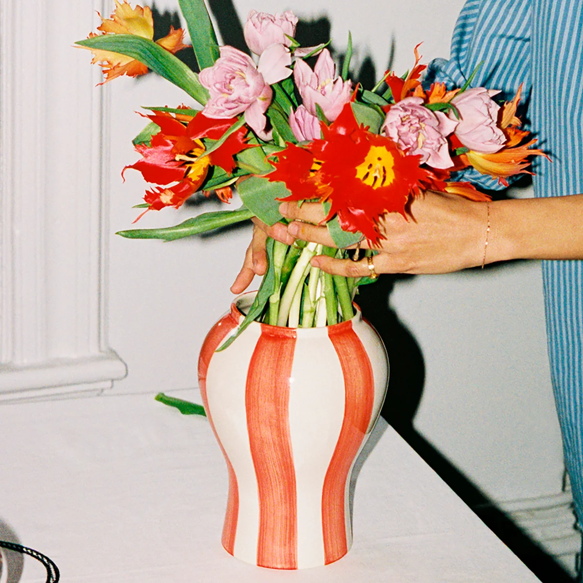 Vase en faïence peint à la main avec un design à rayures