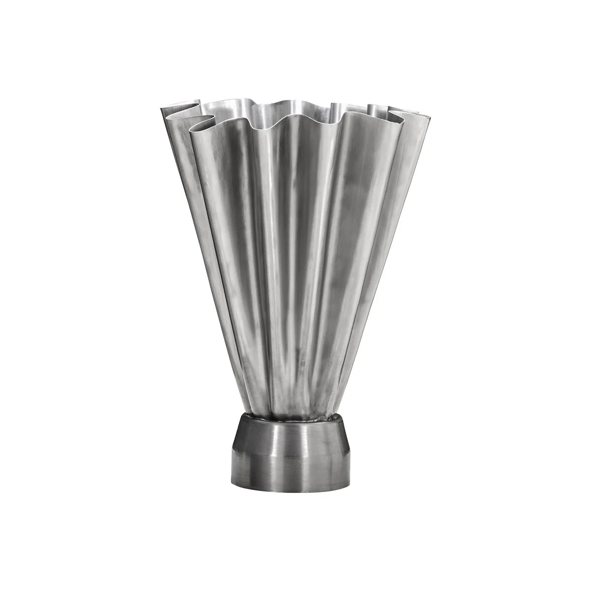 Les plis dynamiques du vase ne sont pas seulement décoratifs, ils soutiennent les brins des fleurs. Le vase peut ainsi accueillir aussi bien des fleurs et des arbustes individuels que des bouquets luxuriants.