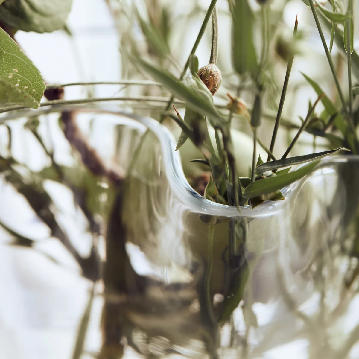 Le vase Plis, fabriqué à la main en verre transparent soufflé à la bouche, allie charme intemporel et esthétique moderne. Son ouverture incurvée le rend idéal pour des compositions florales créatives et confère à chaque pièce une atmosphère élégante. Un accessoire élégant qui met parfaitement en valeur les accents naturels.