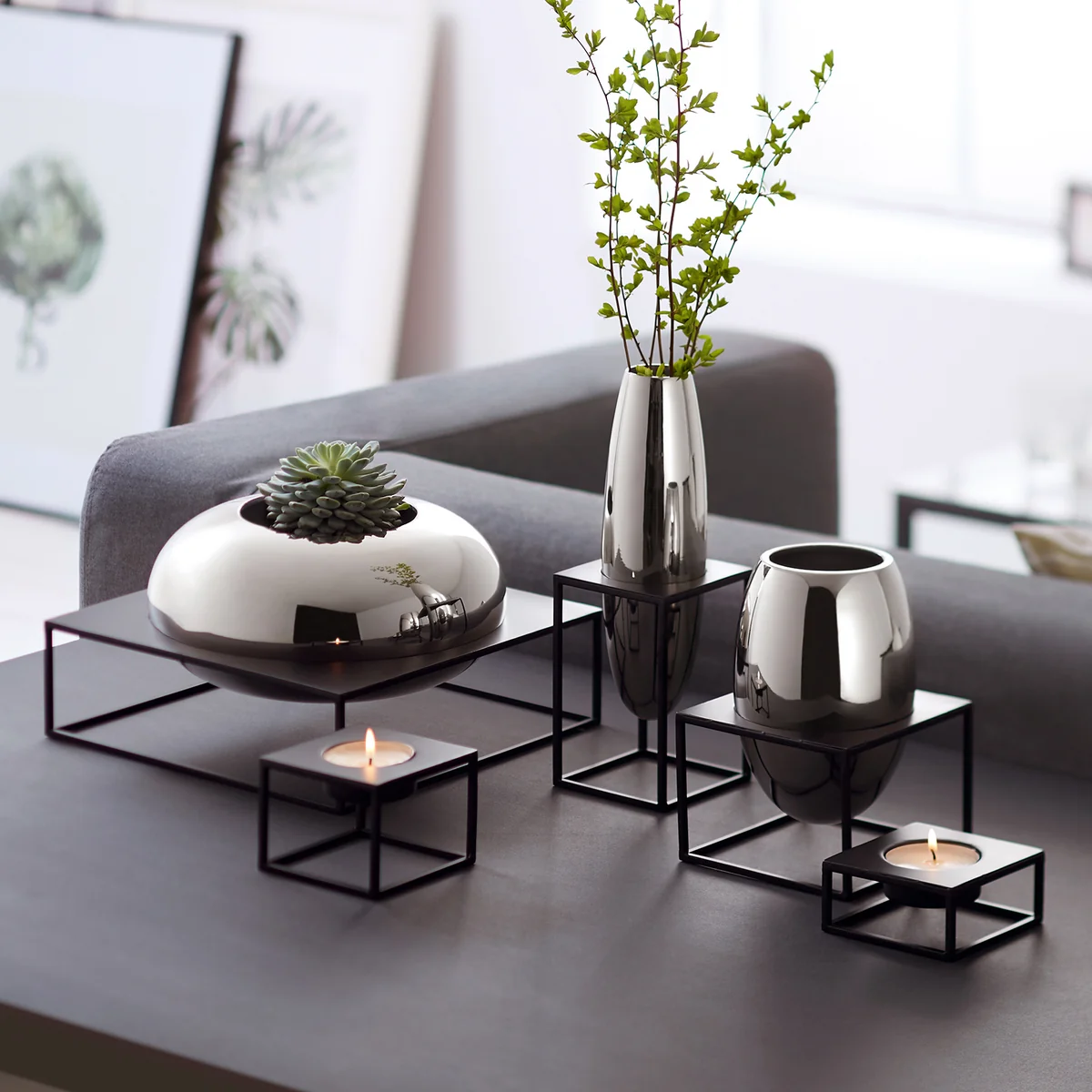 Le vase est fabriqué en nickel hautement poli. Le site Solero Le vase est disponible en différentes finitions.