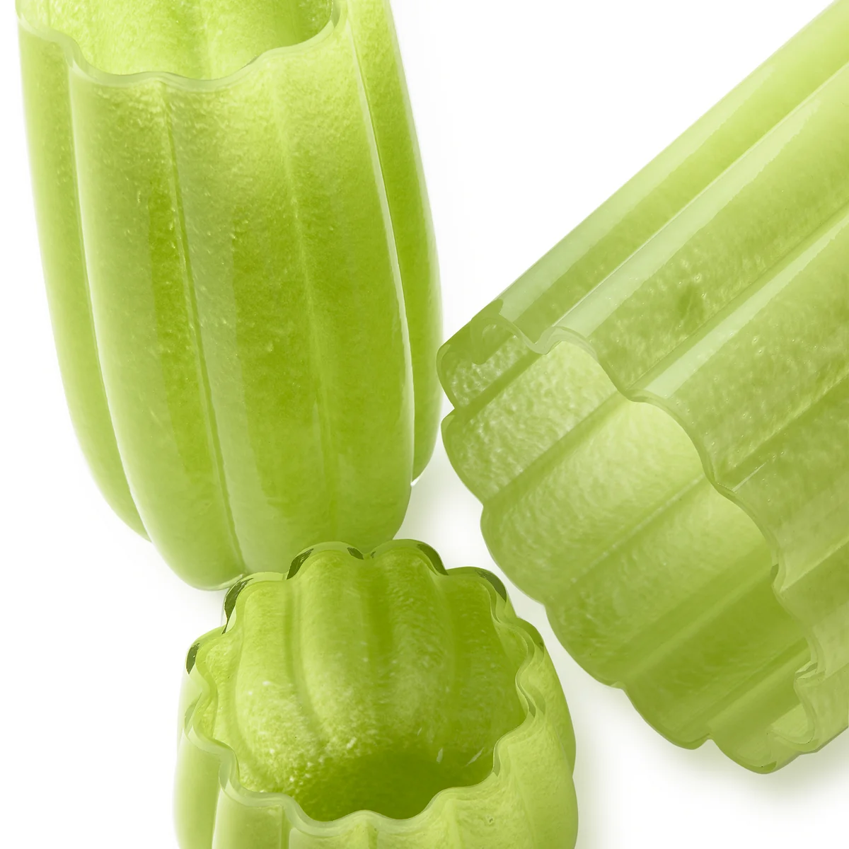 Le Melon de la maison Pols Potten séduit par sa forme arrondie et ses couleurs fraîches. Melon Il a été développé en collaboration avec des fleuristes, mais le vase en verre est également très artistique sans fleurs. L'extérieur cannelé du vase rappelle par son design les pots en terre cuite traditionnels.