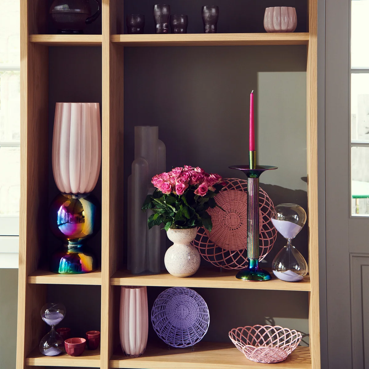Le vase en verre est disponible en différentes tailles et couleurs dans la boutique Connox Design.