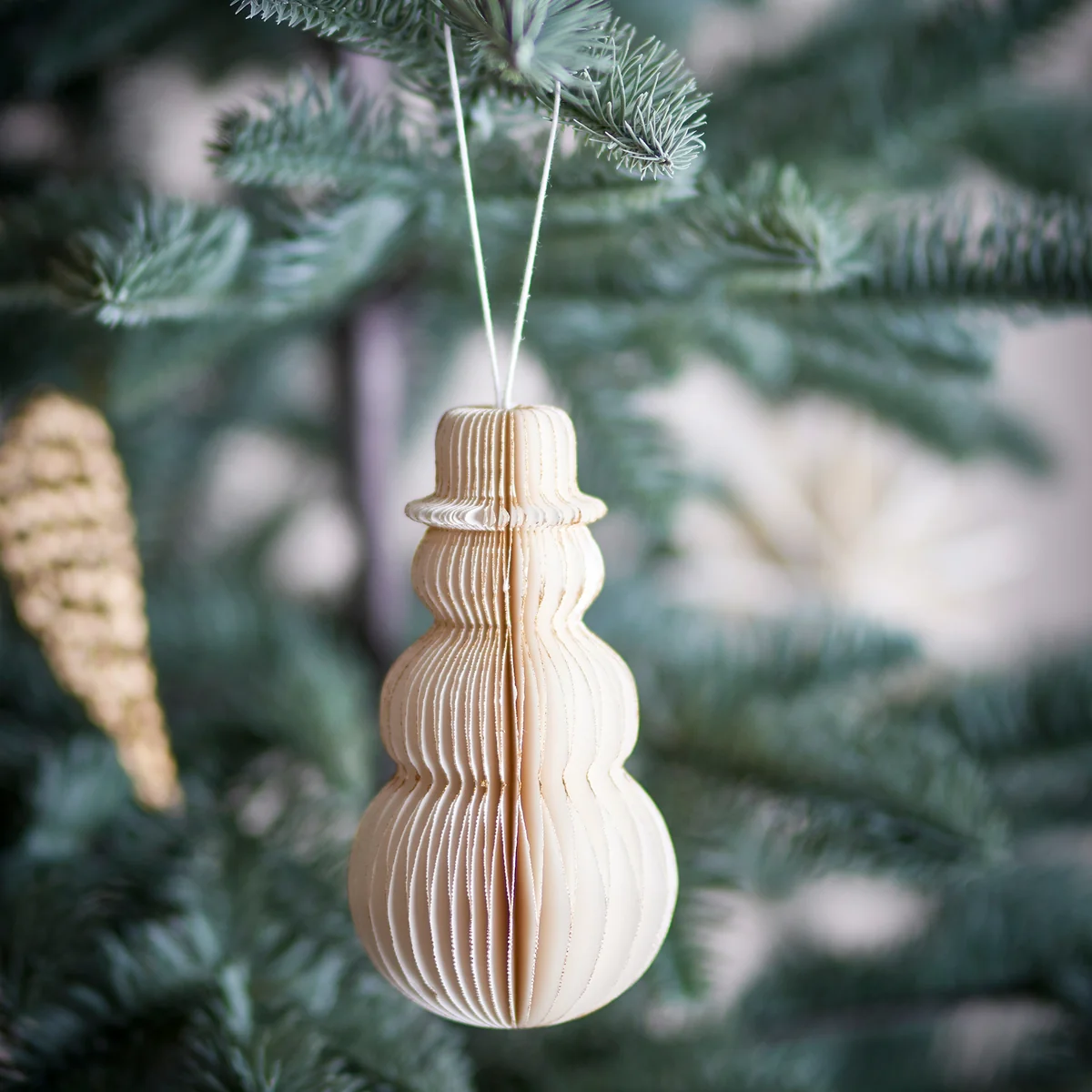L'ornement Felip de Bloomingville se présente sous la forme d'un bonhomme de neige stylisé en papier aux contours fins et à la bordure délicatement dorée. Il se plie pour prendre peu de place et donne une charmante note aérienne au sapin de Noël ou à une décoration festive.