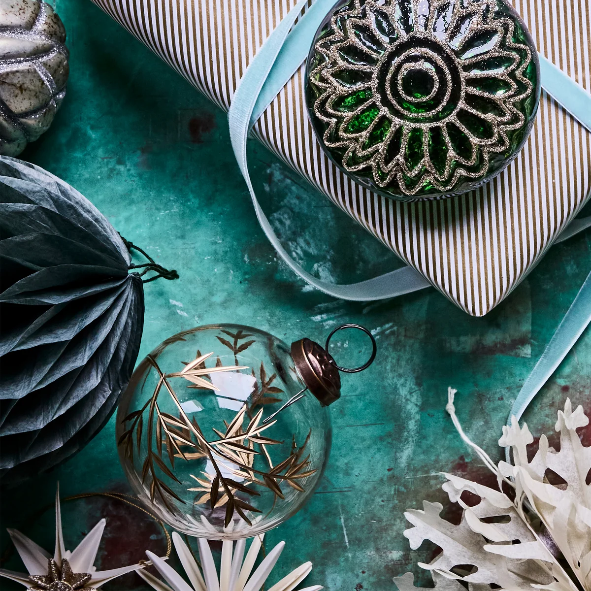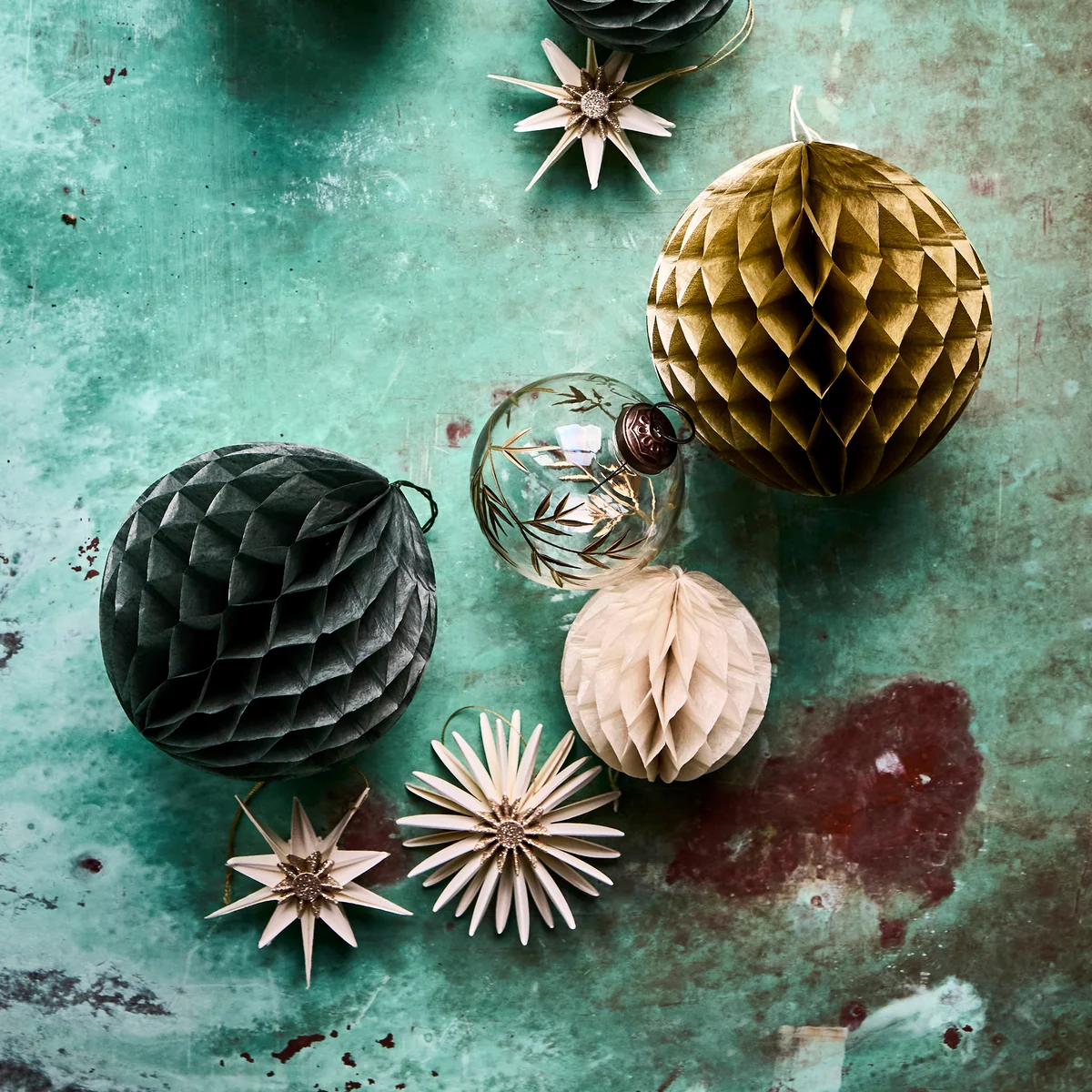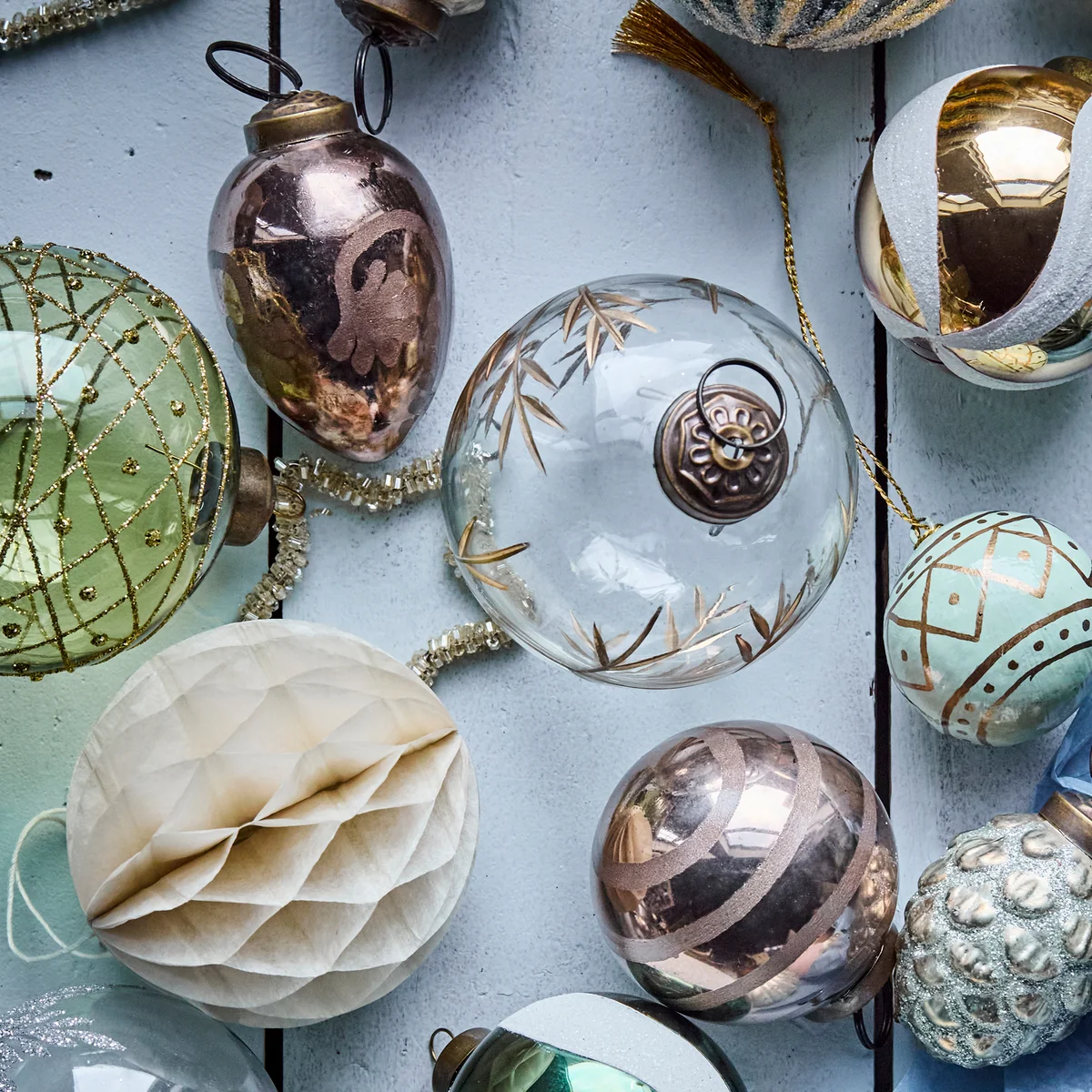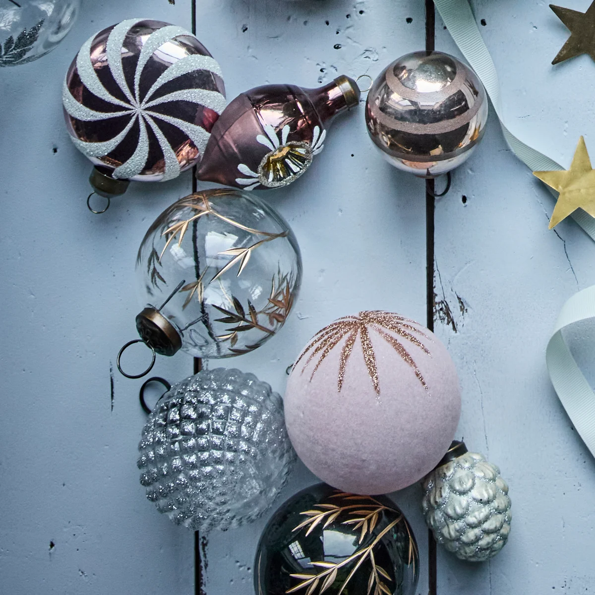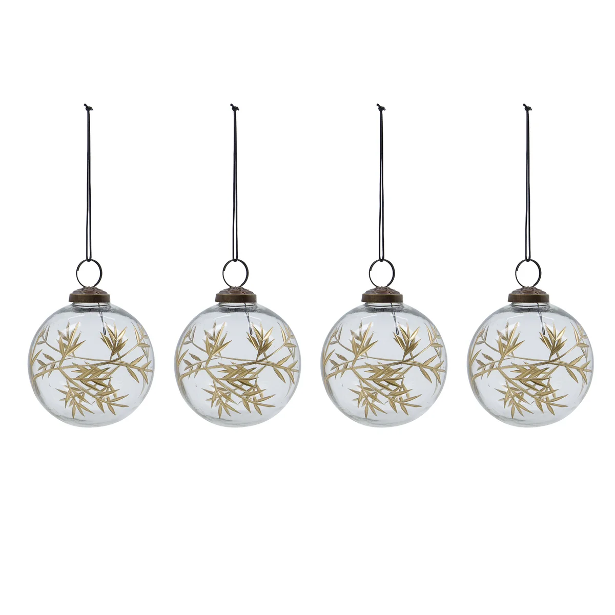 House Doctor - Leaf Ornements, Ø 7,5 cm, transparent / or (set de 4)