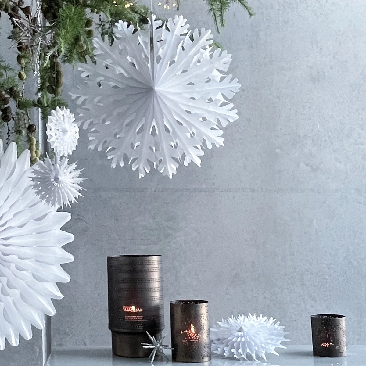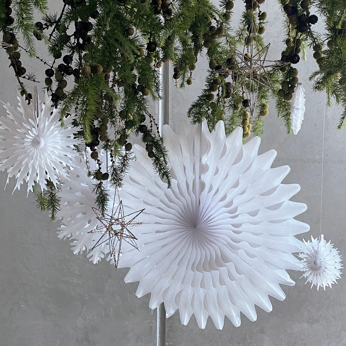 L'étoile de Noël Fold de House Doctor donne une touche moderne et personnelle à la décoration de Noël. Fabriquée à la main en papier, l'étoile peut s'intégrer dans les styles d'aménagement les plus divers et rappelle un motif traditionnel et la neige. L'étoile en papier peut être combinée de diverses manières et se montre particulièrement volontiers au plafond ou au mur.