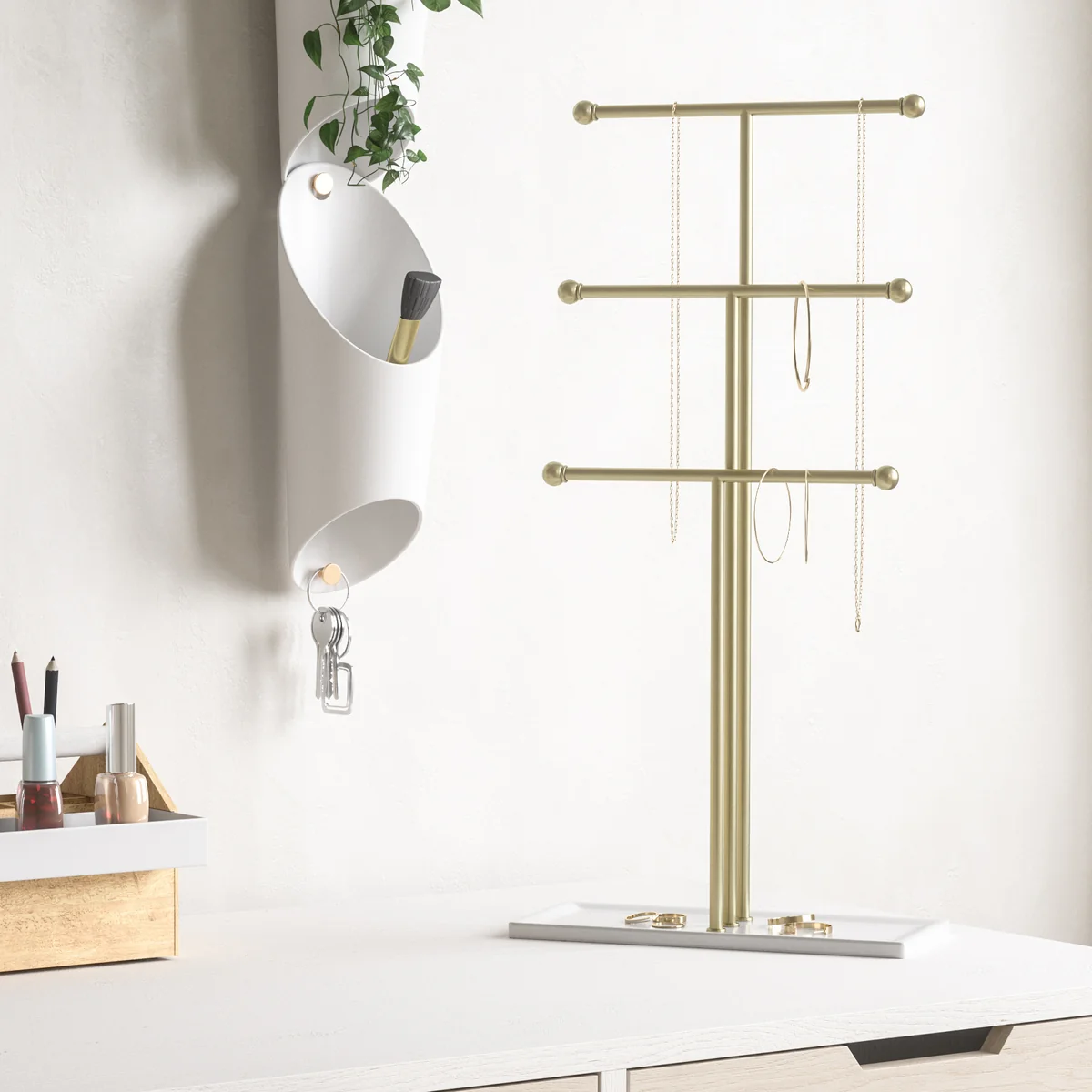 Umbra - Trigem Présentoir à bijoux, laiton / blanc