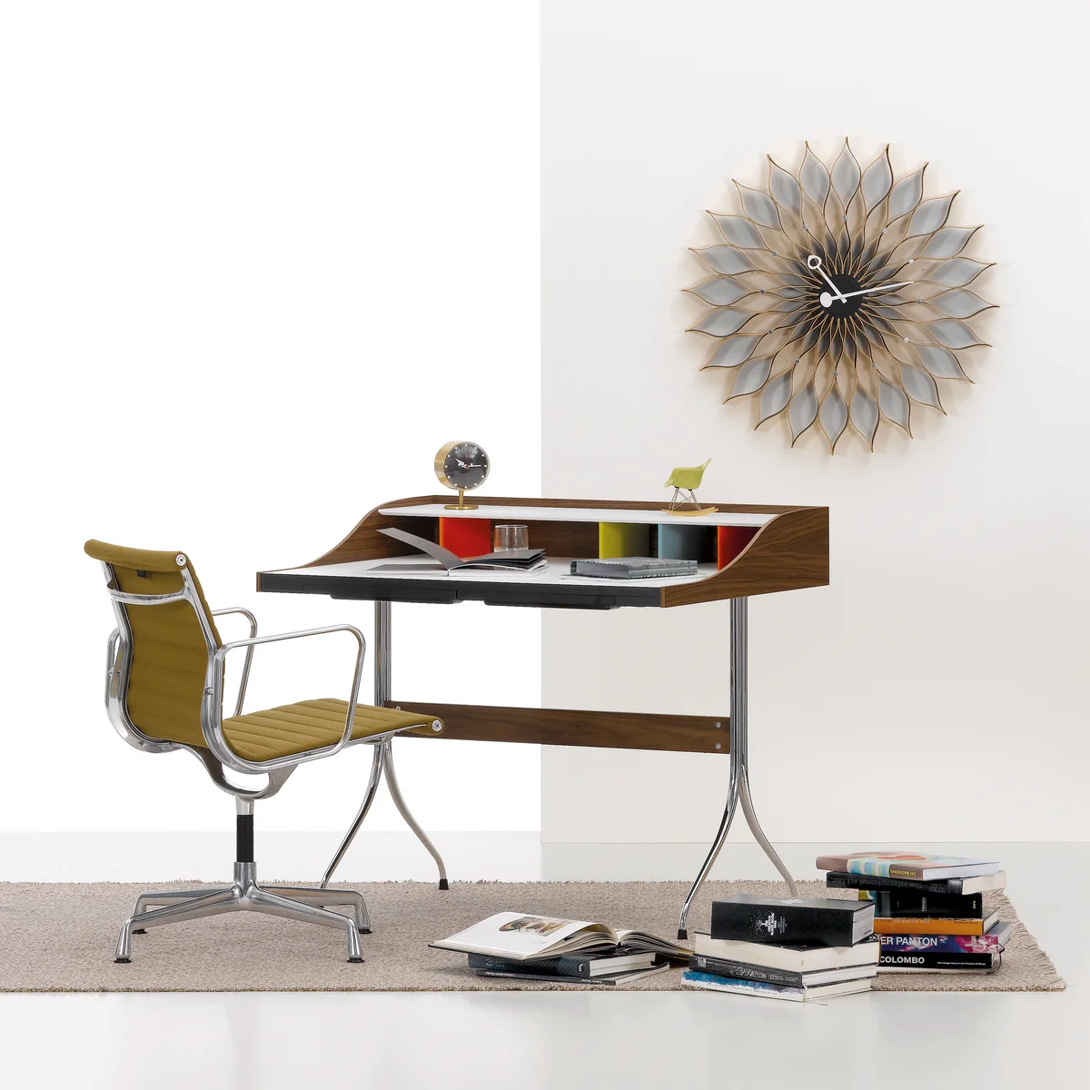 Dans une variété de matériaux et de formes sculpturales, les horloges de George Nelson incarnent la joie de vivre des années 50. Ses horloges sont encore de nos jours une alternative rafraîchissante aux mesureurs du temps conventionnels. Le musée Vitra Design réedite les modèles convoités par les collectioneurs dans leur forme originelle de 1958..