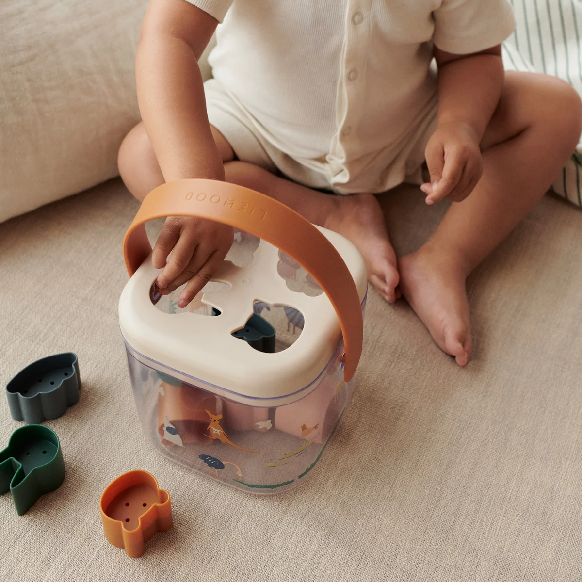 Le Lucinda Puzzle Box de LIEWOOD est un jouet éducatif conçu avec amour qui invite les enfants à découvrir, à trier et à combiner. La boîte transparente avec poignée et couvercle amovibles contient plusieurs formes colorées qui doivent être insérées dans les ouvertures correspondantes - une manière ludique de développer la motricité fine, la coordination œil-main et la pensée logique.