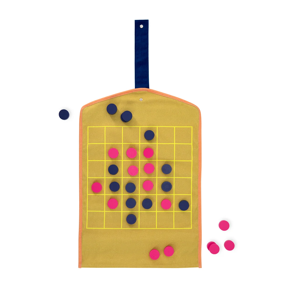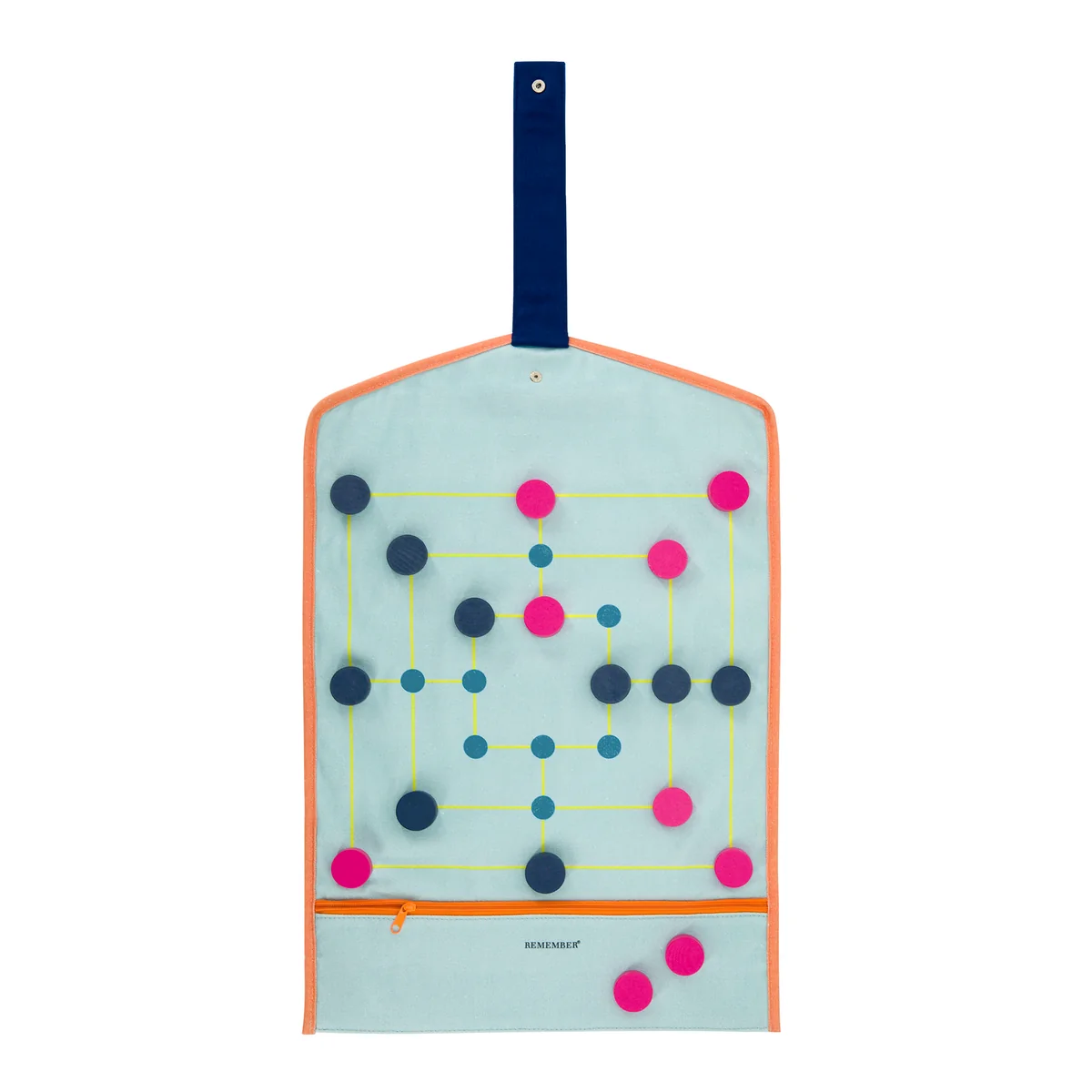 Que diriez-vous d'un jeu à emporter avec Roll-Up de Remember Ce jeu de moulin ou de match à quatre en coton à base de textile est parfait pour les longs trajets en voiture, les excursions au parc ou une journée à la plage. Pour l'emporter facilement avec soi, il suffit d'enrouler le jeu et de le fermer avec un bouton-pression. Les pions colorés sont rangés de manière pratique dans une poche intégrée.