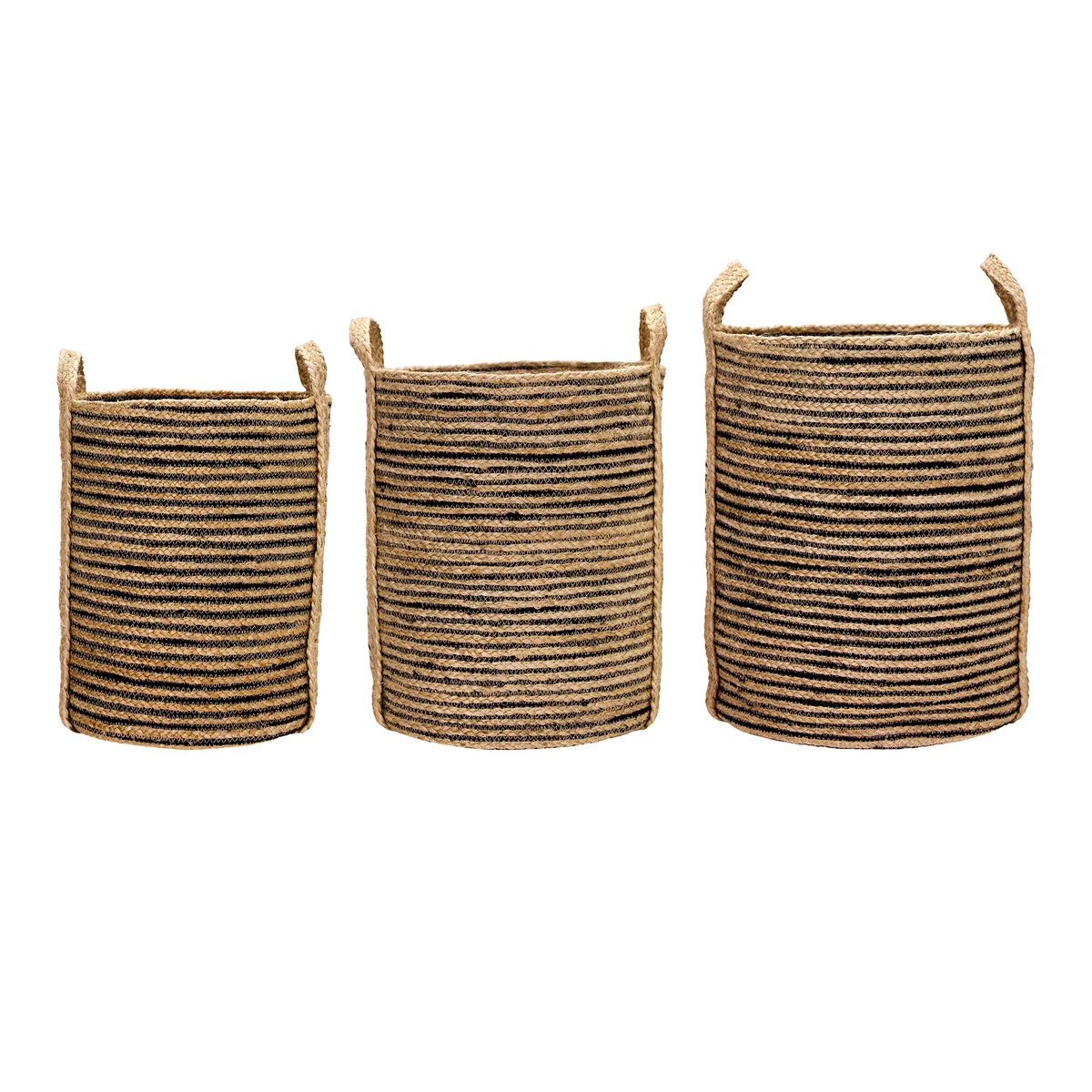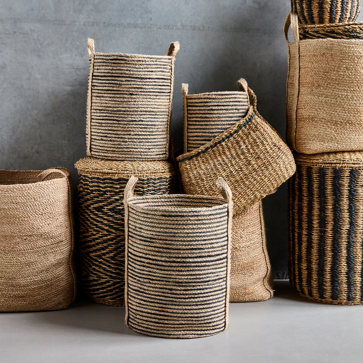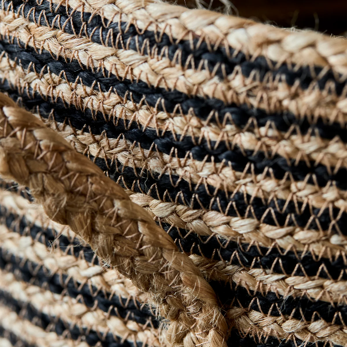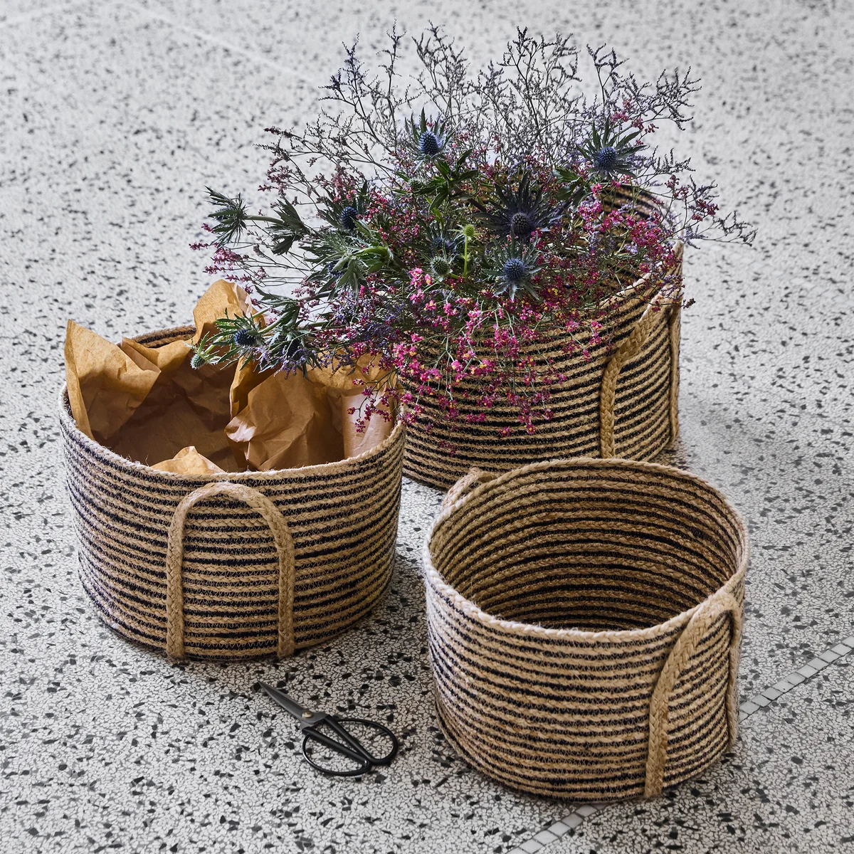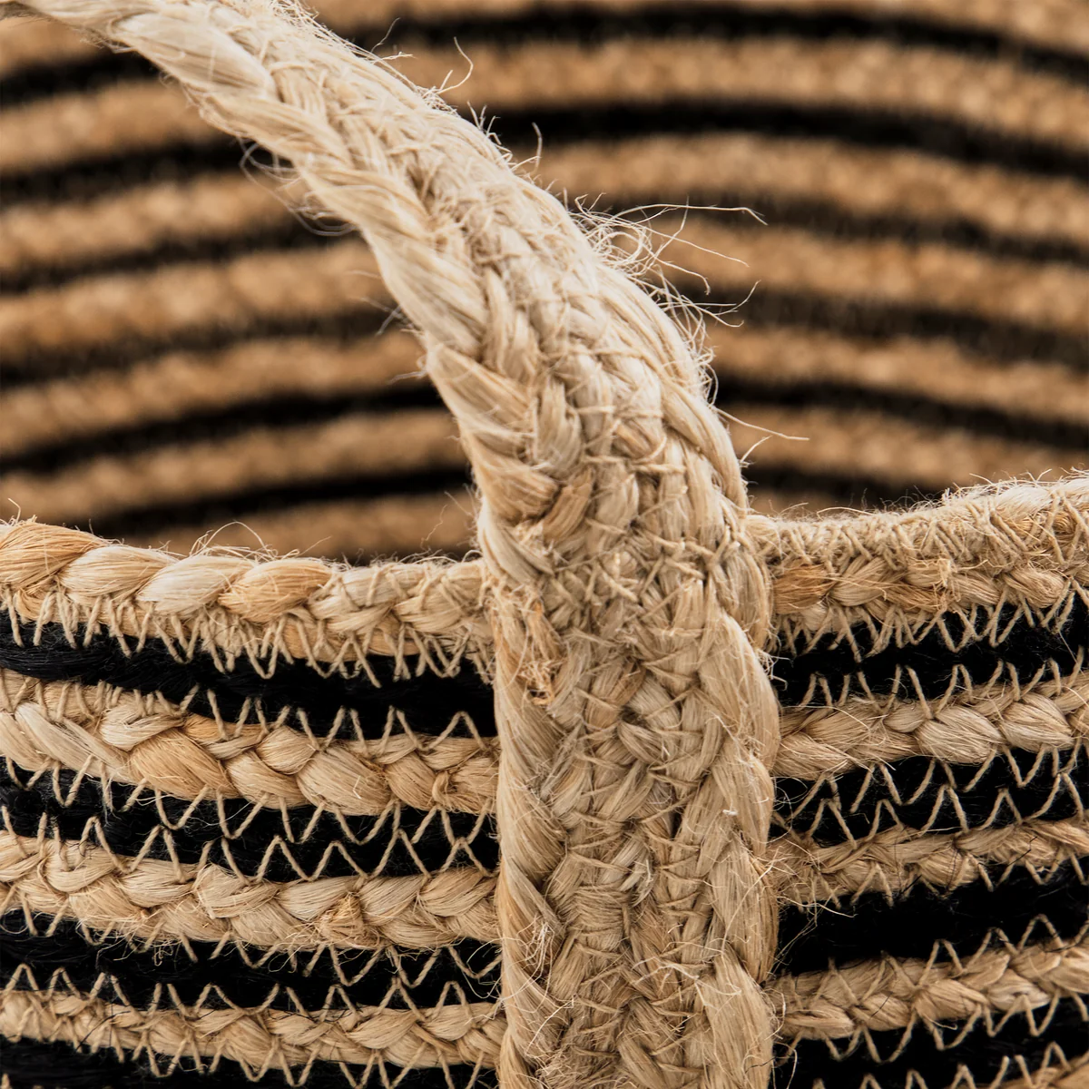 Les paniers de rangement Dungi de House Doctor combinent un design artisanal et une fonctionnalité au quotidien. Fabriqués à 100 % en jute, ils apportent une note chaleureuse et authentique à votre intérieur grâce à leur matériau naturel et à leur élégant motif à rayures noir et naturel. Que ce soit pour des couvertures, des magazines, des jouets ou du linge - grâce aux poignées pratiques, les corbeilles sont faciles à transporter et peuvent être utilisées de manière flexible dans différentes pièces. Une aide élégante pour l'ordre et la convivialité.