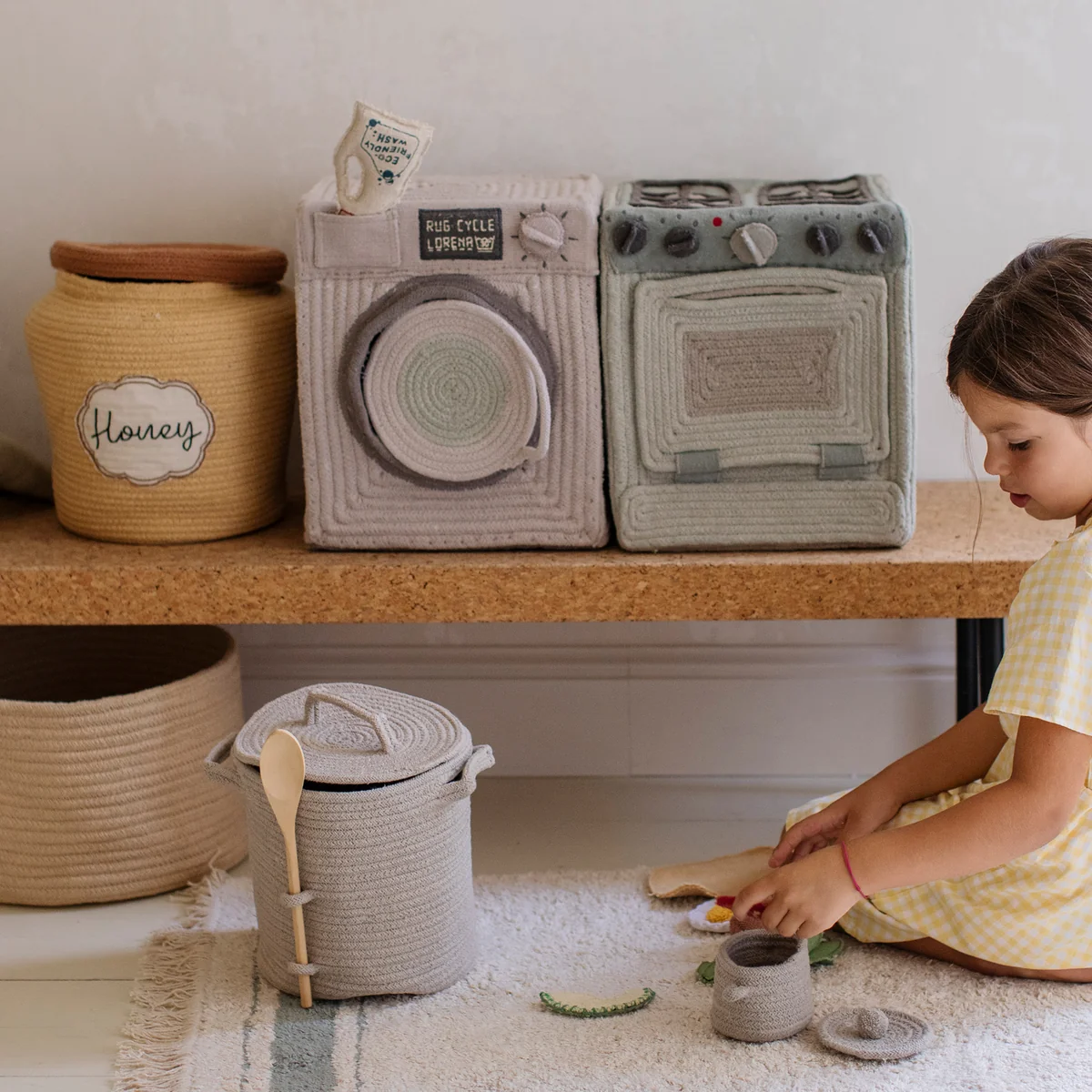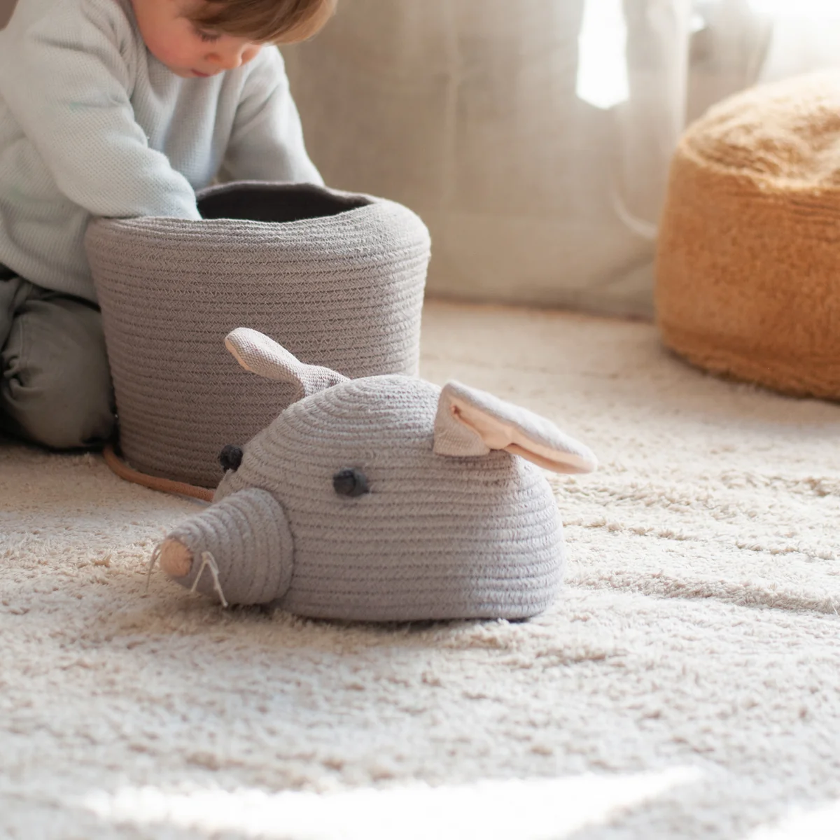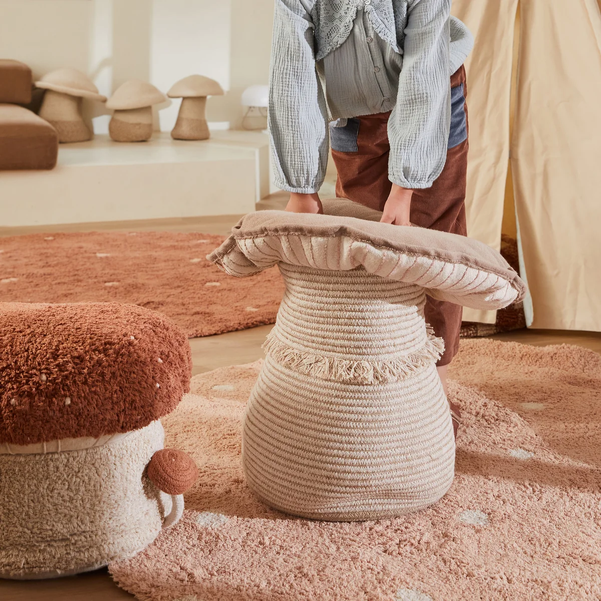 Le panier de jeu et de rangement de la maison espagnole Lorena Canals séduit par son aspect féerique et son espace de rangement évasé ! Le panier est fabriqué à partir de ficelles tressées à la main. Les ficelles sont composées de bouteilles PET recyclées et de fibres de coton. Comme il s'agit d'un article fabriqué à la main, il peut y avoir de légères différences entre les produits.