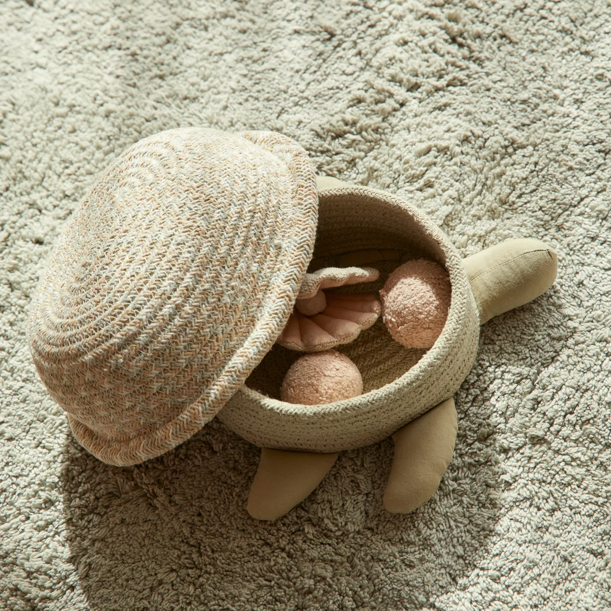 Le panier de rangement Sea Turtle de Lorena Canals fait entrer l'ambiance de la mer dans la chambre d'enfant. Fabriqué à la main avec des cordes tressées à partir de fils de bouteilles PET recyclés, le panier prend de jolies proportions et des membres fins qui lui donnent une forme élégante. Le panier peut être utilisé pour ranger de petits trésors et les garder toujours à portée de main.
