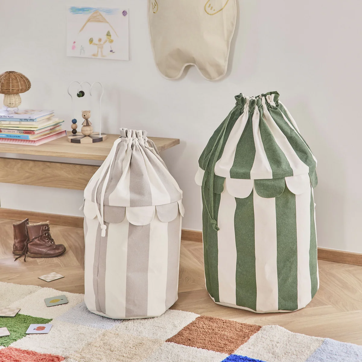 Le panier de rangement Saga en deux parties offre une solution à la fois pratique et décorative pour le rangement dans la chambre d'enfant ou le salon. Fabriqués en toile robuste, les paniers sont résistants et faciles à nettoyer. La forme flexible avec des poignées latérales facilite le transport, tandis que les différentes tailles créent de multiples possibilités d'utilisation - par exemple pour les jouets, le linge, les livres ou les accessoires. Le design adapté aux enfants complète la fonction avec un aspect sympathique.
