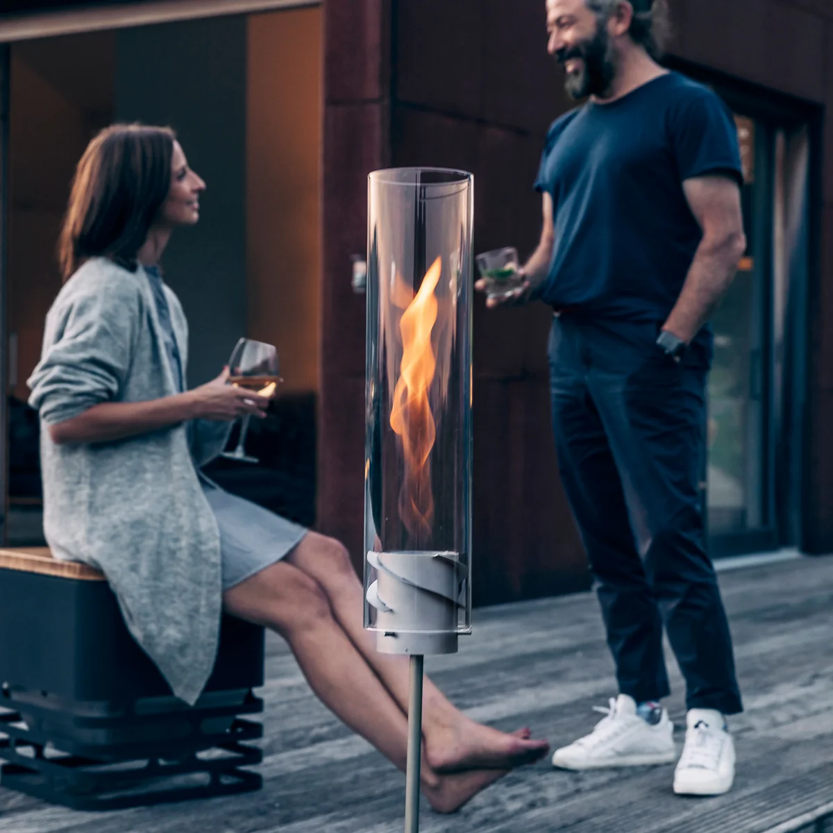 Avec le pied, la torche Spin peut être transformée en feu de table. Il suffit d'échanger le jeu contre le pied et un feu agréable est créé sur la table du jardin.
