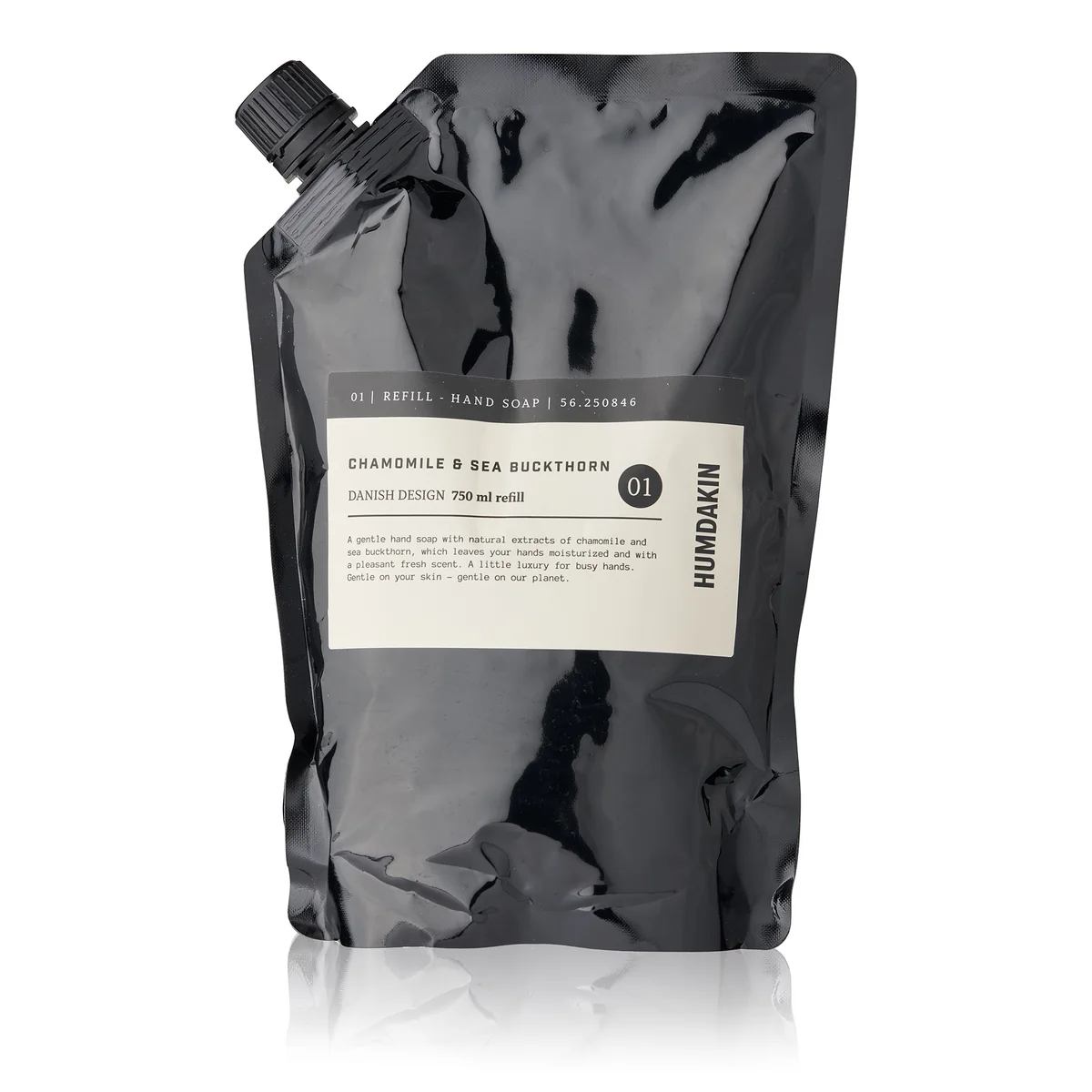Cette recharge de savon pour les mains de Humdakin suffit à remplir 2,5 fois un récipient de savon existant, ce qui préserve l'environnement des emballages inutiles. Tout comme le savon contenu dans le distributeur à pompe , ce savon liquide est également composé d'extraits naturels et nourrissants d'argousier, de sureau ou de pivoine.