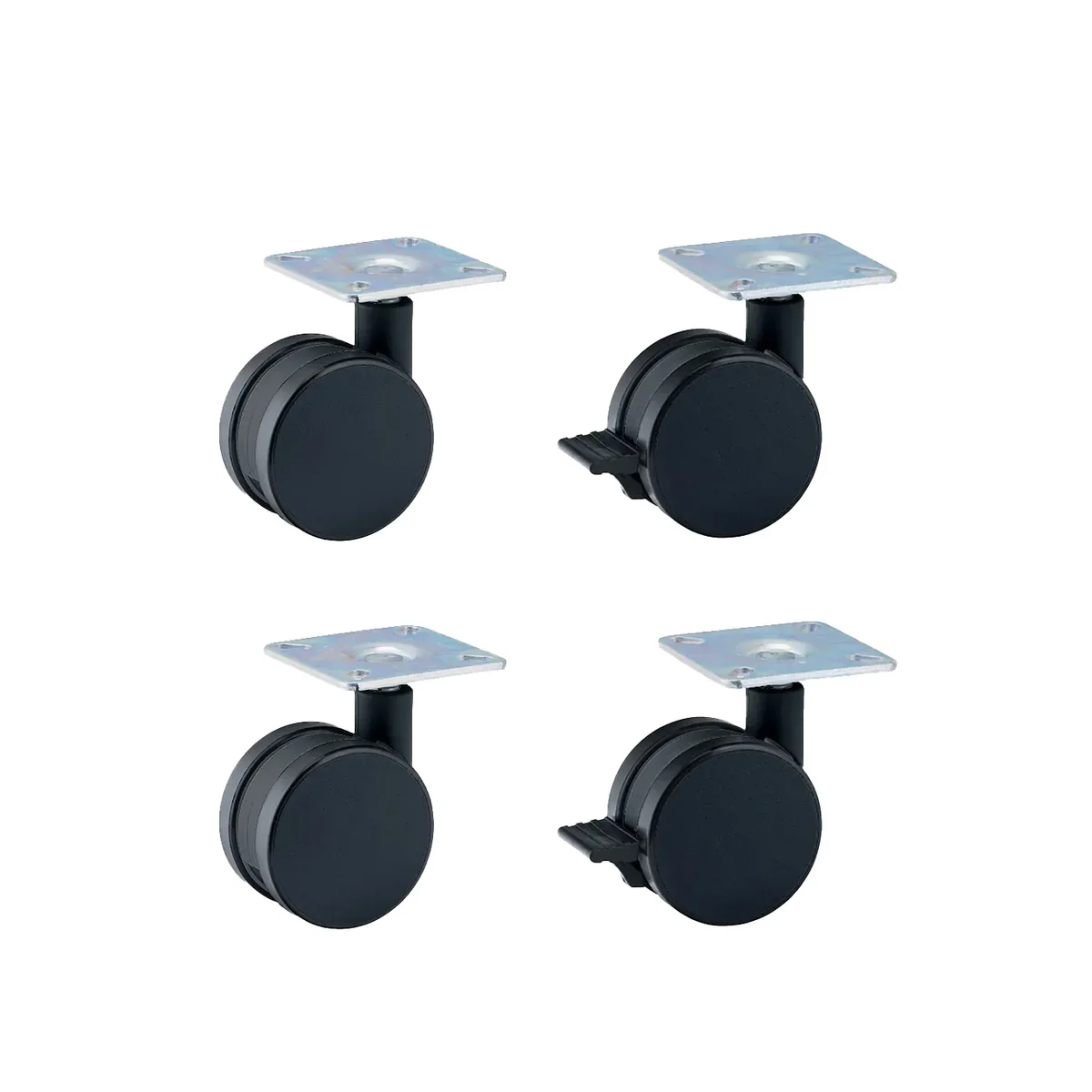 Le jeu de 4 roulettes pour meubles allie finition de qualité, fonctionnalité et flexibilité. Disponibles en noir ou en gris clair, les roulettes s'intègrent harmonieusement dans différents styles d'aménagement. Deux des roulettes sont équipées d'une fonction de blocage afin de fixer les meubles en toute sécurité à la position souhaitée. Le montage est simple et s'effectue à l'aide des vis fournies pour une fixation stable.