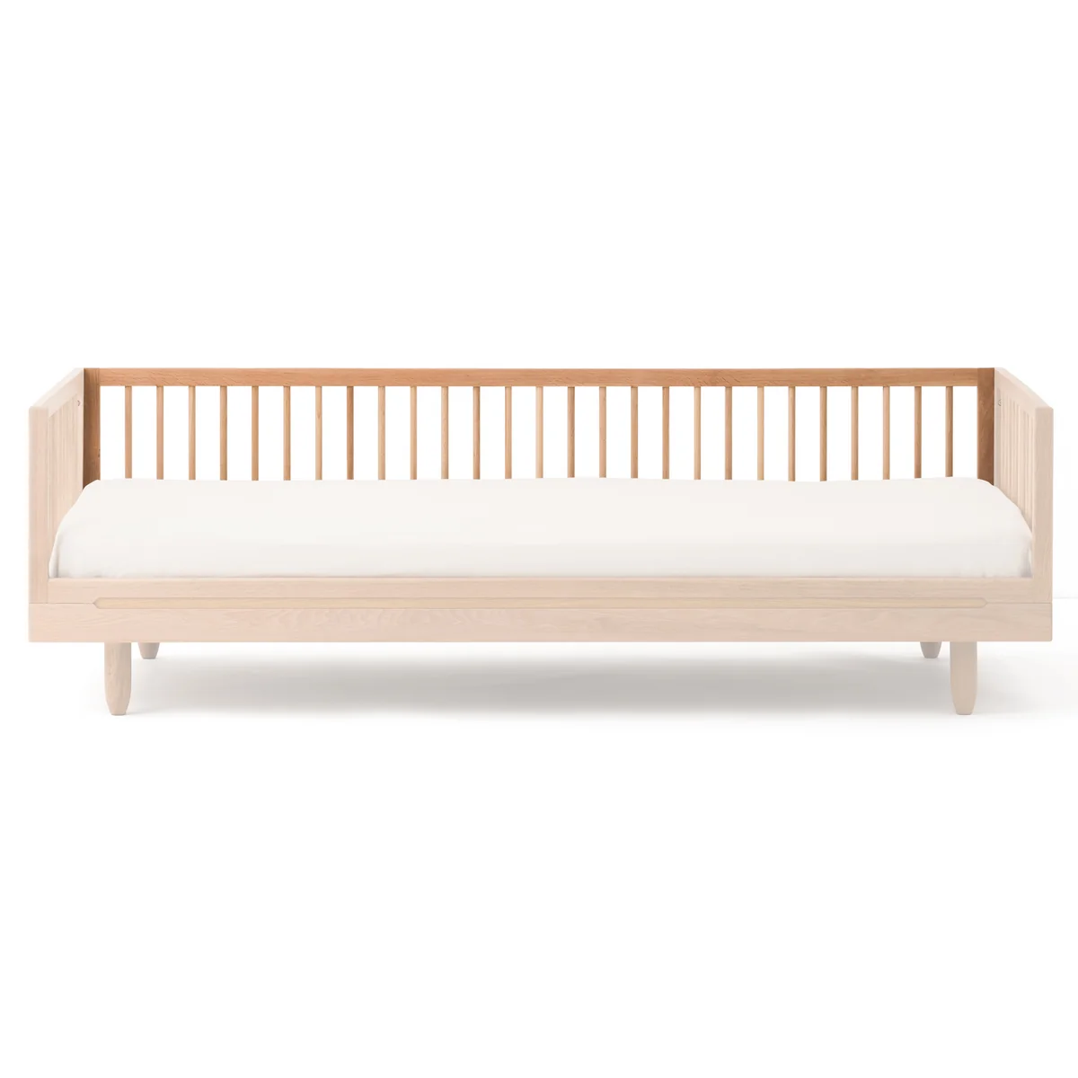 Avec l'extension du kit canapé, le lit Pure Single de Nobodinoz peut être facilement converti en canapé. Le lit a déjà une grille à l'extrémité tête et pied. L'extension ajoute un long dossier sur lequel vous pouvez vous appuyer. La grille est en chêne américain issu d'une culture durable. Équipé d'oreillers et de couvertures, le lit peut être rendu confortable et douillet.