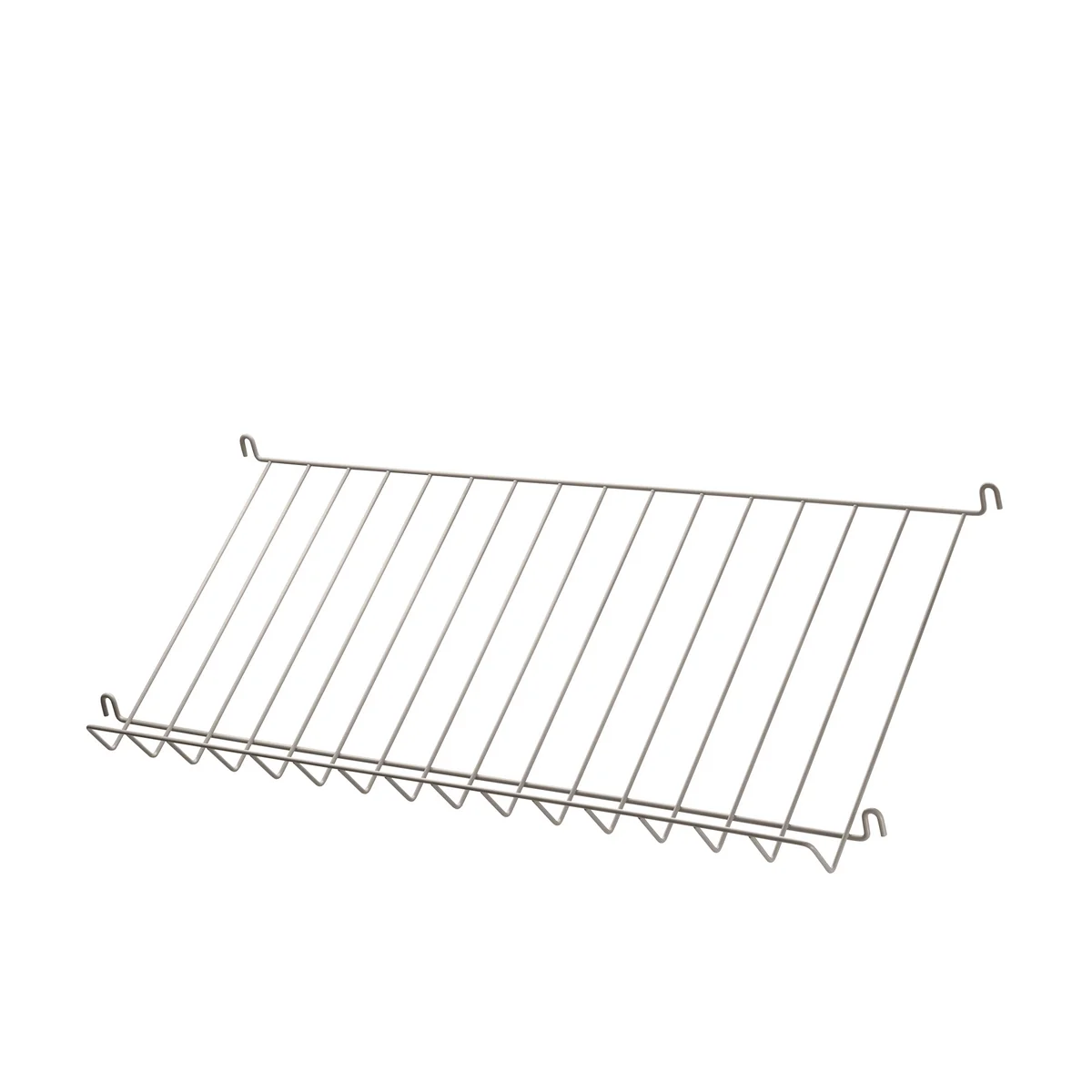 Outre la variante en fil métallique, la tablette est également disponible en différentes teintes de bois, ce qui permet de l'assortir aux étagères de différentes couleurs.