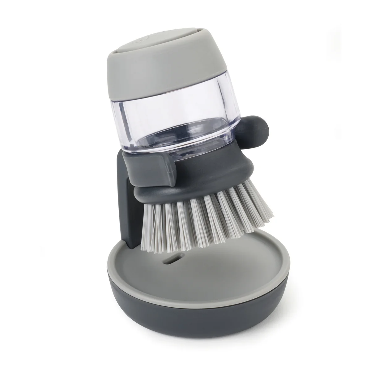 Faire la vaisselle est un jeu d'enfant avec la brosse à vaisselle Palm Scrub de Joseph Joseph . Ses poils résistants aux rayures garantissent la propreté des casseroles, poêles et plats. La brosse est également dotée d'un distributeur de détergent facile à remplir qui distribue la bonne quantité de détergent par simple pression sur un bouton. La brosse est également livrée avec un support dans lequel la brosse peut être rangée et vidée.