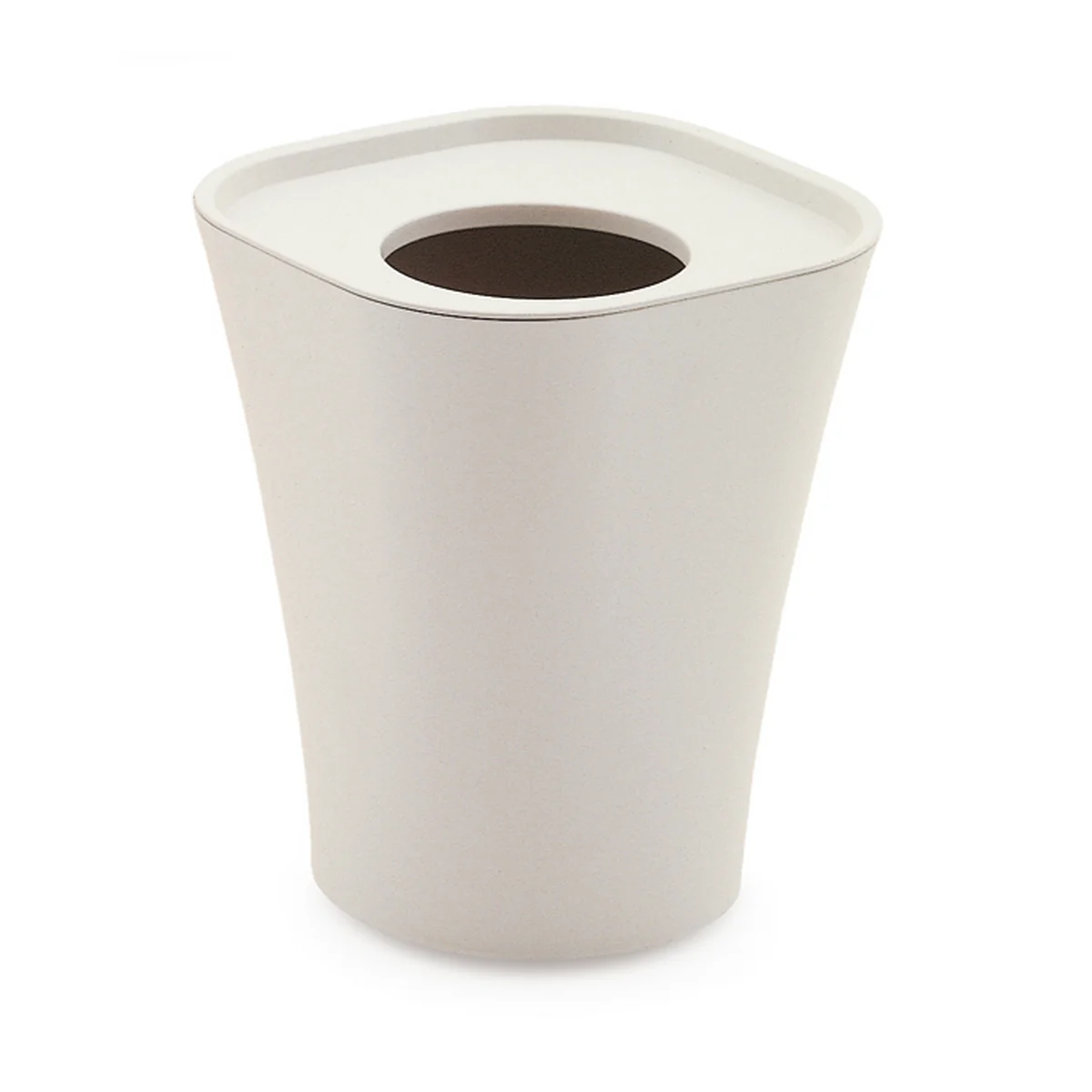La corbeille à papier Trash a été conçue en 2005 par Jasper Morrison pour le fabricant italien Magis. La poubelle a une forme futuriste et simple et est fournie par Magis avec un couvercle et un anneau de retenue pour les sacs poubelles.